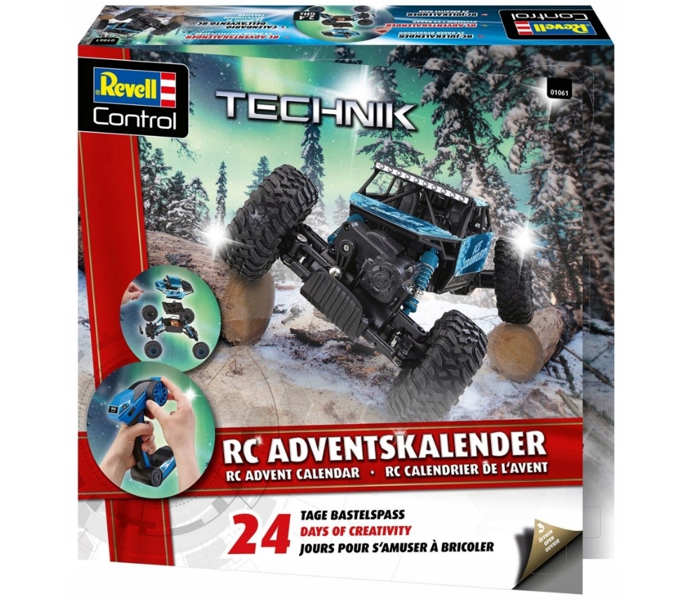 Uživajte u adventu punom tehnike i zabave s RC Crawlerom Revell Control! Ovaj jedinstveni adventski kalendar vodi vas kroz 24 koraka, na čijem kraju nastaje veličanstven model terenskog automobila u mjerilu 1:18. Idealno za djecu od 8 godina koja vole sastavljanje, RC tehniku i uzbudljive izazove.