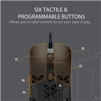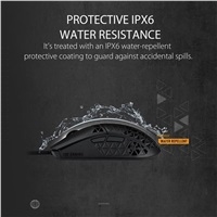 Lagana žičana gaming miš s senzorom 16 000 dpi, šest programabilnih tipki, ultralakom konstrukcijom Air Shell, vodootpornošću IPX6, antibakterijskom zaštitom ASUS, kablom TUF Gaming Paracord i nogicama od čistog teflona.