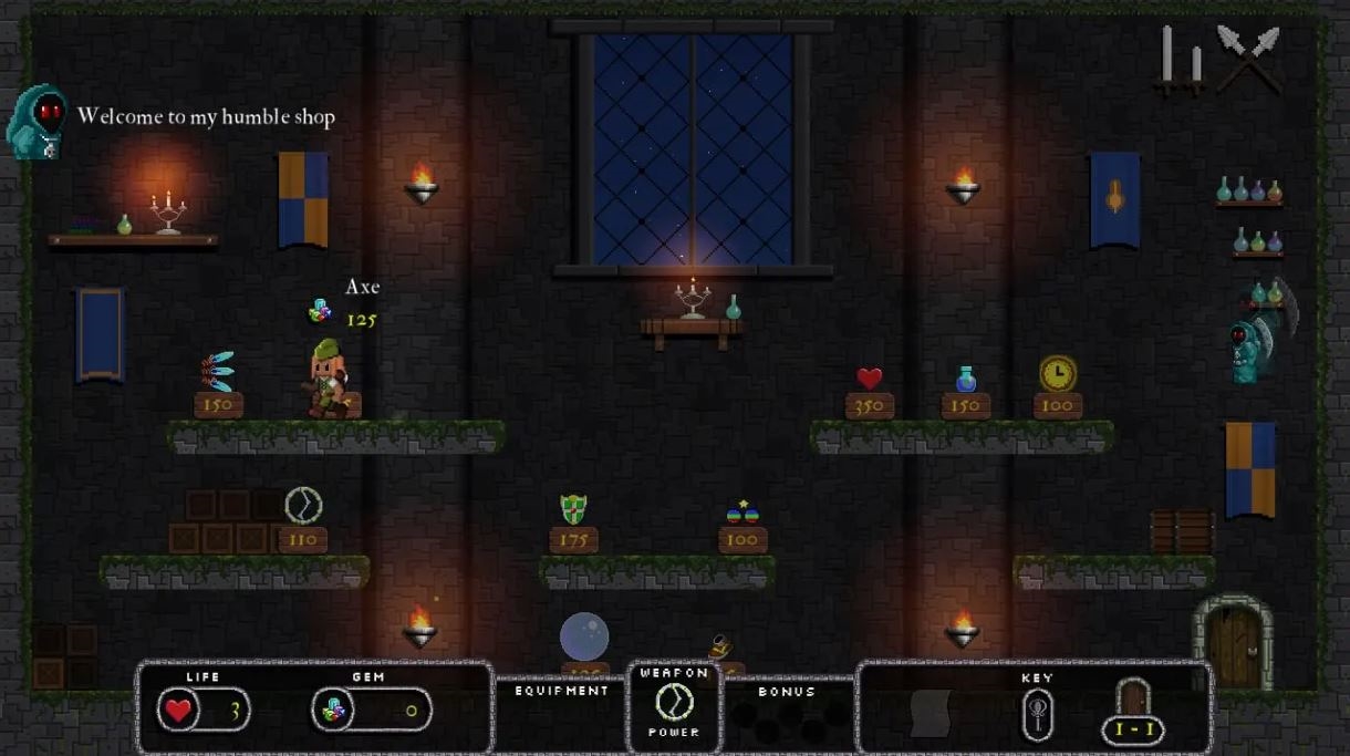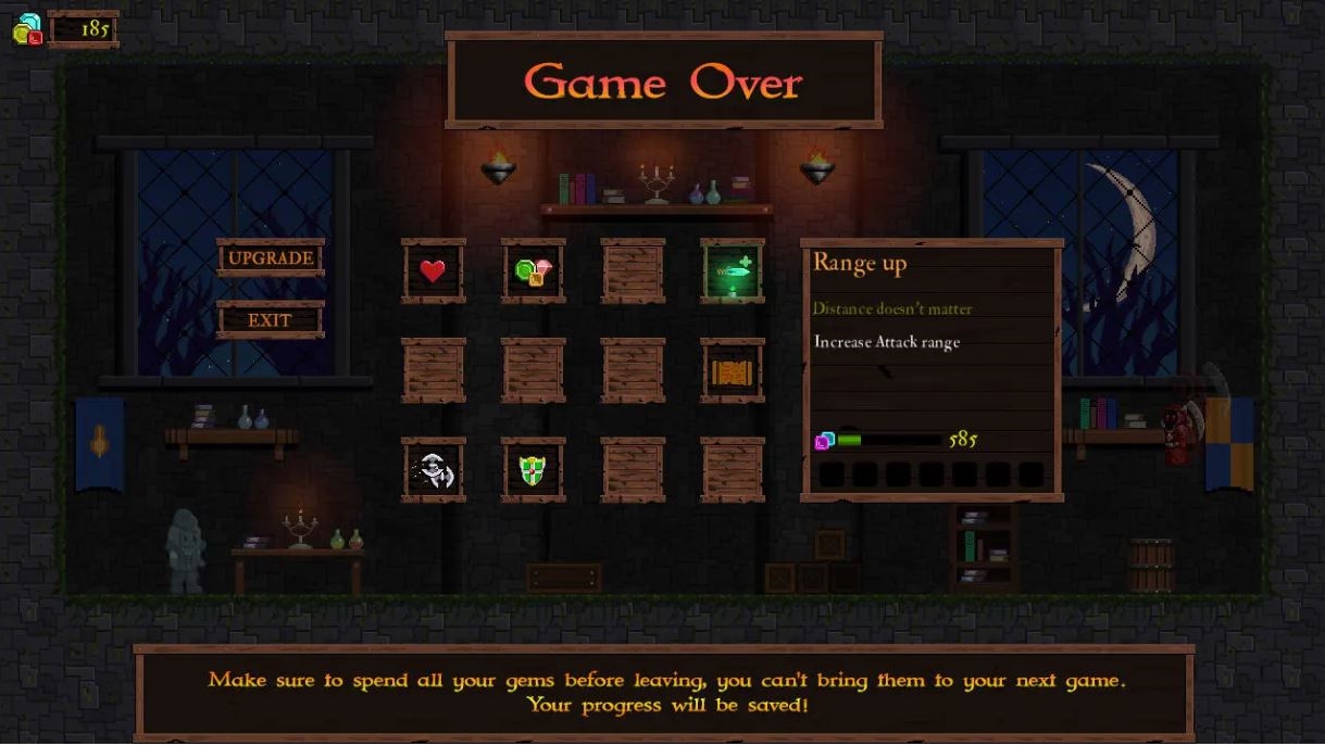 Postoji više od 100 razina koje su ručno izrađene i nasumično odabrane za svako igranje. Igra sadrži sustav trajnih nadogradnji. Pri svakom igranju nasumično se odabiru različiti rasporedi za svaku razinu. S draguljima koje prikupite moći ćete nadograditi svoj lik na zaslonu Game Over. Te nadogradnje su trajne i pomoći će vam u budućim igrama.