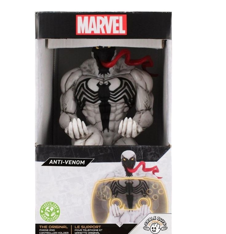 Figurativni držač Cable Guys - Marvel Anti-Venom donosi jedinstveni dizajn inspiriran ikoničnim antihrem iz Marvelovih stripova. Ovaj držač za igraće kontrolere i mobilne telefone spaja praktičnost s fanovskim stilom, zahvaljujući kojem će postati ukras svakog igraćeg kuta. Pogodan za većinu igraćih kontrolera i pametnih telefona, prikladan za PlayStation, Xbox, Switch kontrolere itd. Kompatibilan s većinom mobilnih telefona.