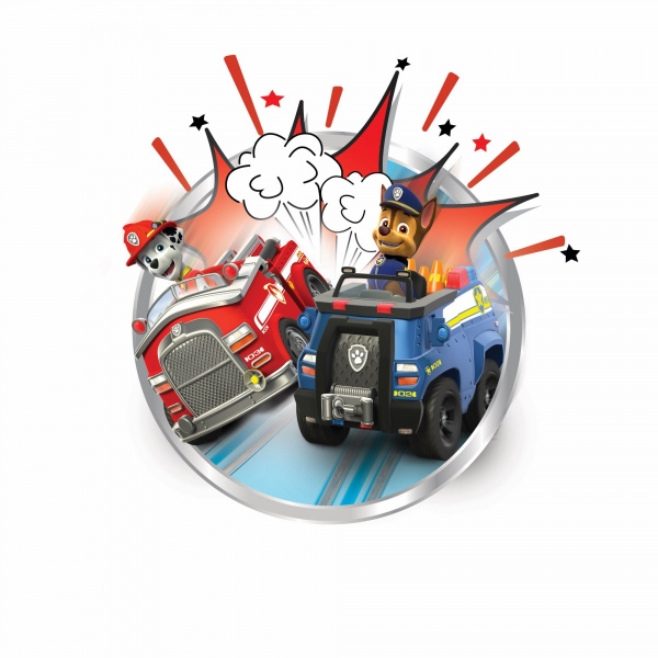 Set za utrkivanje sadrži sve što djeca trebaju za trenutni start – autići Chase i Marshall, zavoji, ravnice, dvije utrkivačke kapije i šarene dekoracije s motivima omiljene animirane serije. Zahvaljujući jednostavnom sustavu sklapanja staza se lako sastavlja i rastavlja, pa zabava može započeti za tren.