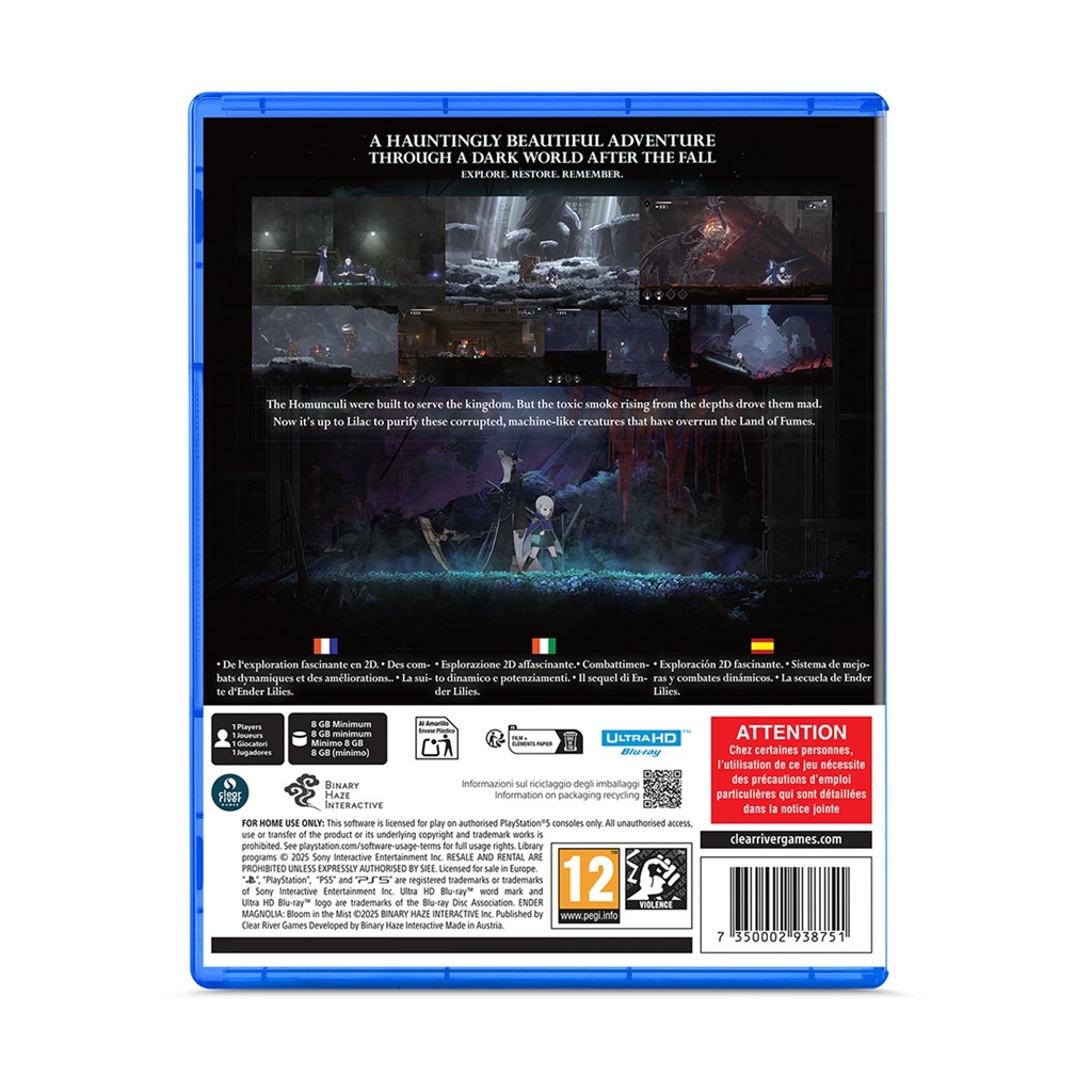 ENDER MAGNOLIA je mračna fantazijska 2D akcijska RPG igra s bočnim skrolanjem, u kojoj krećeš na put kroz pustu zemlju Fumes i pokušavaš spasiti ljude i homunkule. Kraljevstvo, koje je na vrhuncu magičnog i mehaničkog razvoja, sastoji se od hijerarhijske društvene strukture. Nailazit ćeš na napuštene gradove, otkrivati laboratorije prepune odvratnih tajni, veličanstvenu Akademiju vještica, kolosalne tvornice i još mnogo toga. Pred tobom se otvara zastrašujuće lijep, a istovremeno jeziv svijet ENDER MAGNOLIA.