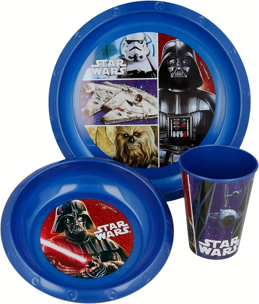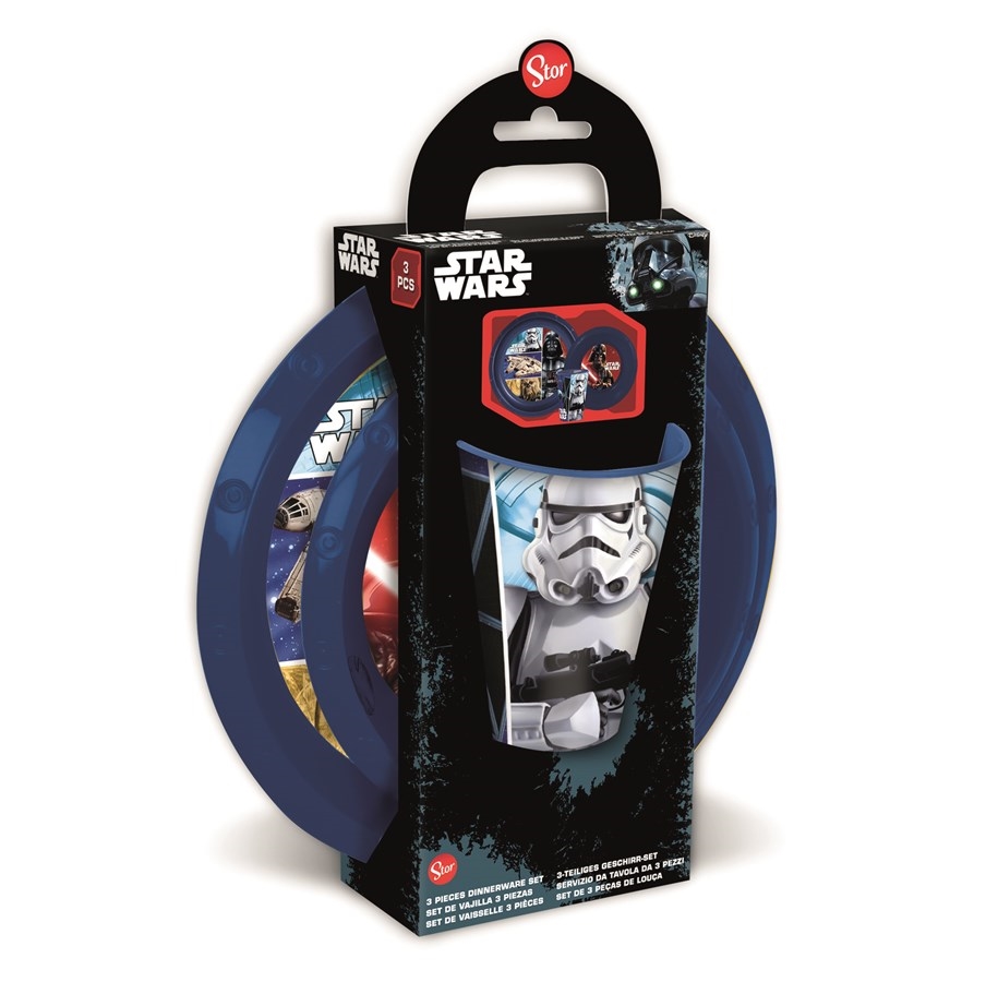 Star Wars. Može se stavljati u perilicu posuđa samo pri niskim temperaturama pranja. Set je prikladan za mikrovalnu pećnicu do najviše dvije minute.