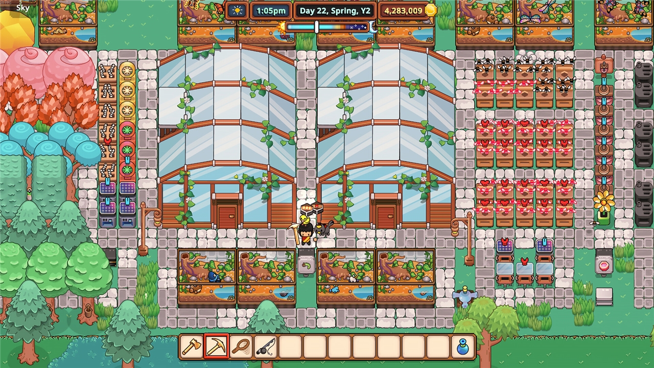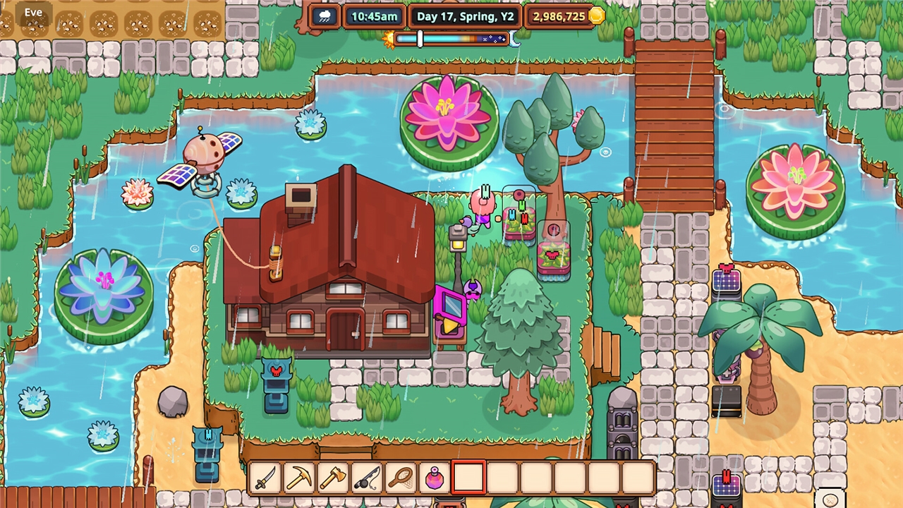 Naravno, ako ti treba mala pomoć, ne brini! Automatizirani dronovi mogu proširiti tvoj inventar, brinuti se za usjeve, pa čak ti i pomoći u borbi. A tvoj kućni ljubimac ti je nedostajao više nego išta drugo kad si bio u hladovini. Tu je da ti pomogne na farmi i nauči razne korisne stvari, kao što su obrađivanje tla, zalijevanje usjeva, pa čak i teleportacija po mapi. Što? Nikad nisi čuo za mačku koja se teleportira?