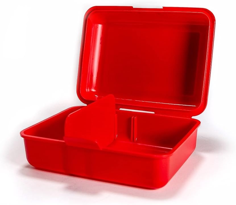 Svi marljivi poljoprivrednici i oni koji to tek žele postati ne smiju zaboraviti na doručak. Ova praktična kutija za užinu, ukrašena otiskom kravlje glave, održat će sendviče i druge grickalice svježima sve dok vam ne počne kruliti u trbuhu. Pitanje tko ima najstiliziraniju kutiju za užinu za doručkom bit će time jednom zauvijek brzo riješeno. Kutija je izrađena od crvene plastike i nitko s nje neće skidati pogled.