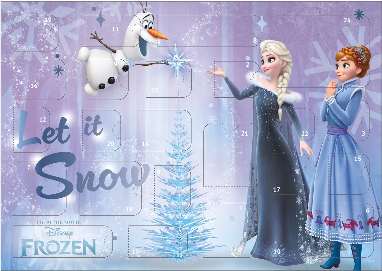 Uživajte u iščekivanju Božića s adventskim kalendarom s motivima omiljenih filmova iz serije Snježno kraljevstvo (Disney: Frozen)! Svaki dan djeca mogu otvoriti jedno od 24 prozorčića, iza kojega ih čeka malo iznenađenje inspirirano omiljenim likovima iz tih čarobnih Disneyjevih filmova.