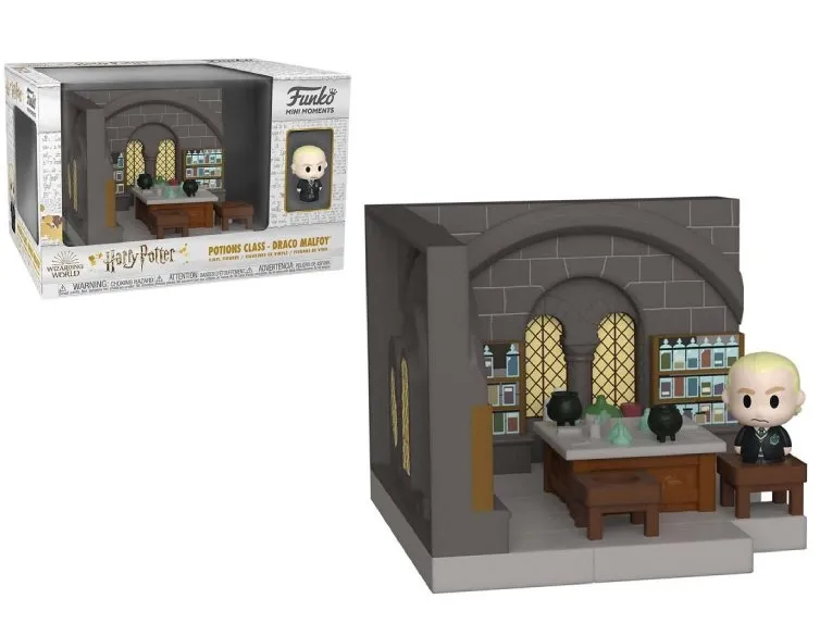 Scena iz sata napitaka iz svijeta Harryja Pottera u obliku Funko POP diorame s Dracom Malfoyem. Funko POP su kolekcionarske figurice temeljene na likovima iz najpoznatijih filmova, TV serija, videoigara i drugih popularnih tema, koje zahvaljujući svom duhovitom izričaju uživaju veliku popularnost među obožavateljima diljem svijeta.