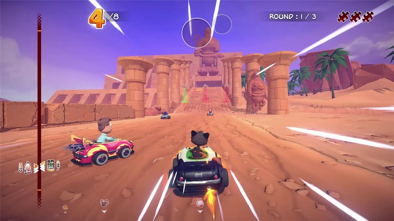 Odaberi svog omiljenog lika i izaberi gokart prema njegovim karakteristikama i tvom stilu vožnje, tempiraj start u utrci što preciznije i pomoću kontroliranih proklizavanja prestigni protivnike u zavoju. Zahvaljujući ludim bonus predmetima, poput jastuka ili čarobnog štapića, stekni prednost nad drugima i prođi ciljnu crtu kao prvi. A ako si jednako lijen kao Garfield, upotrijebi oprugu, uzmi prečac i pokaži svim protivnicima leđa! Na ukupno šesnaest staza iz Garfieldovog svijeta možeš se također utrkivati s prijateljima, i to lokalno i online.