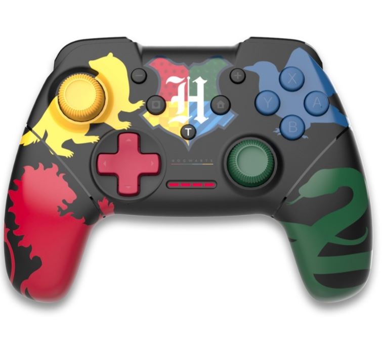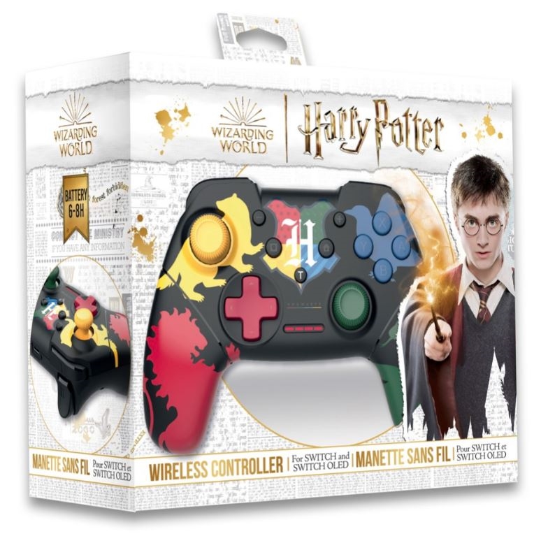 Bežični kontroler u stilu legendarnog Harryja Pottera s motivom kuća iz Hogwartsa kompatibilan s konzolom Nintendo Switch i Nintendo Switch OLED. Kontroler može raditi bežično do 8 sati, a moguće je nastaviti igrati i tijekom punjenja putem priloženog USB-C kabela duljine 1 m. Kontroler također ima funkciju vibracije i 4 LED indikatora.