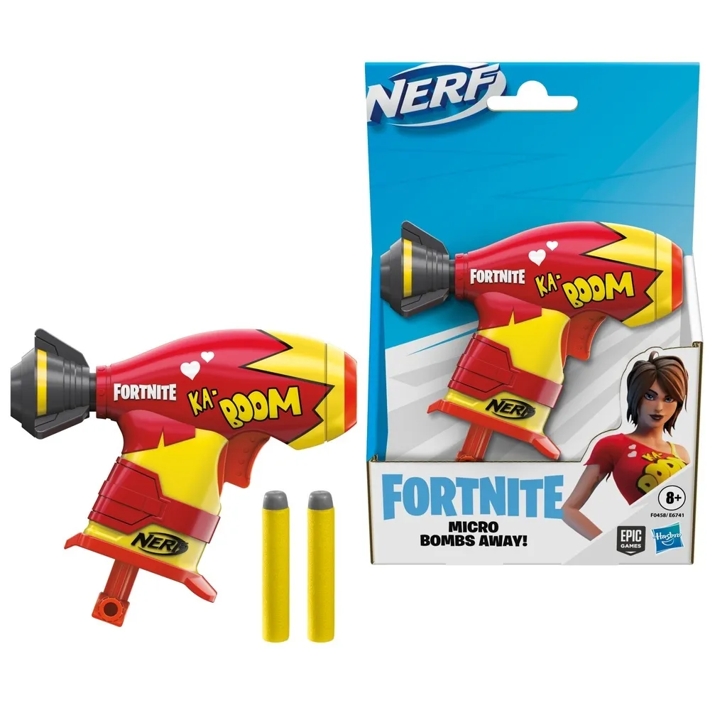 Serija Nerf Micro je izvrstan izbor za sve Nerf i Fortnite entuzijaste. Predstavlja kolekcionarsku verziju omiljenih Nerf blastera, ovaj put i u dizajnu poznate videoigre Fortnite. Otkrijte potpuno funkcionalni mini blaster Fortnite Bombs Away! taman za držanje u ruci, u zanimljivom i neobičnom izdanju. Uz blaster dolaze 2 Elite strelice. Dovoljno je ubaciti 1 strelicu u spremnik i ispaliti, baterije nisu potrebne. Naoružajte prijatelje ili kolege blasterima i krenite u sjajnu bitku koju će pobijediti onaj tko ostane hladne glave i ima precizan nišan.
