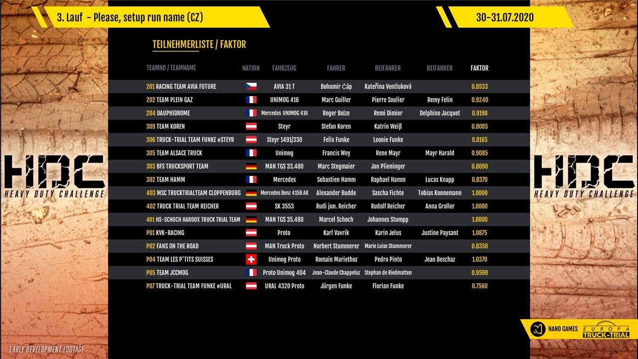 Odaberite između 12 ogromnih moćnih kamiona, koji su detaljno replicirani i od kojih svaki ima jedinstvenu kabinu i autentičnu mehaniku. Svi kamioni temelje se na vozilima iz legendarnog natjecanja European Truck Trial. Počnite s dvosovinskim vozilom IFA W50 i napredujte do vrhunskog četverosovinskog MAN TGS 35.45 i pokažite svima da to mislite ozbiljno.