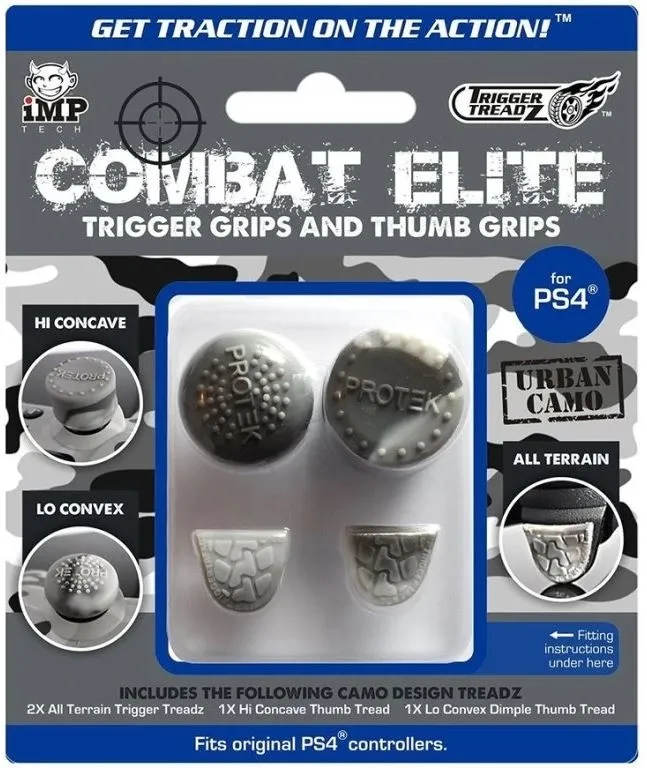 iMP Tech: Trigger Treadz - Combat Elite - Trigger Grips (2 pcs) + Thumb Grips (2 pcs) - Urban Camo (PS4)