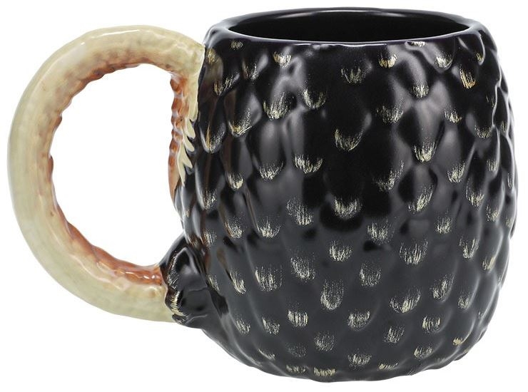 Keramička šalica podsjeća na zmajevo jaje iz serije Game of Thrones, House of the Dragon. Zahvaljujući zlatnom dizajnu ljuski i ručki u obliku zlatnog zmajskog repa, ova šalica je idealna za držanje svježeg napitka. Šalica u obliku zmajevog jajeta je zapanjujuće velika šalica koju će svaki ljubitelj fantasyja rado koristiti.