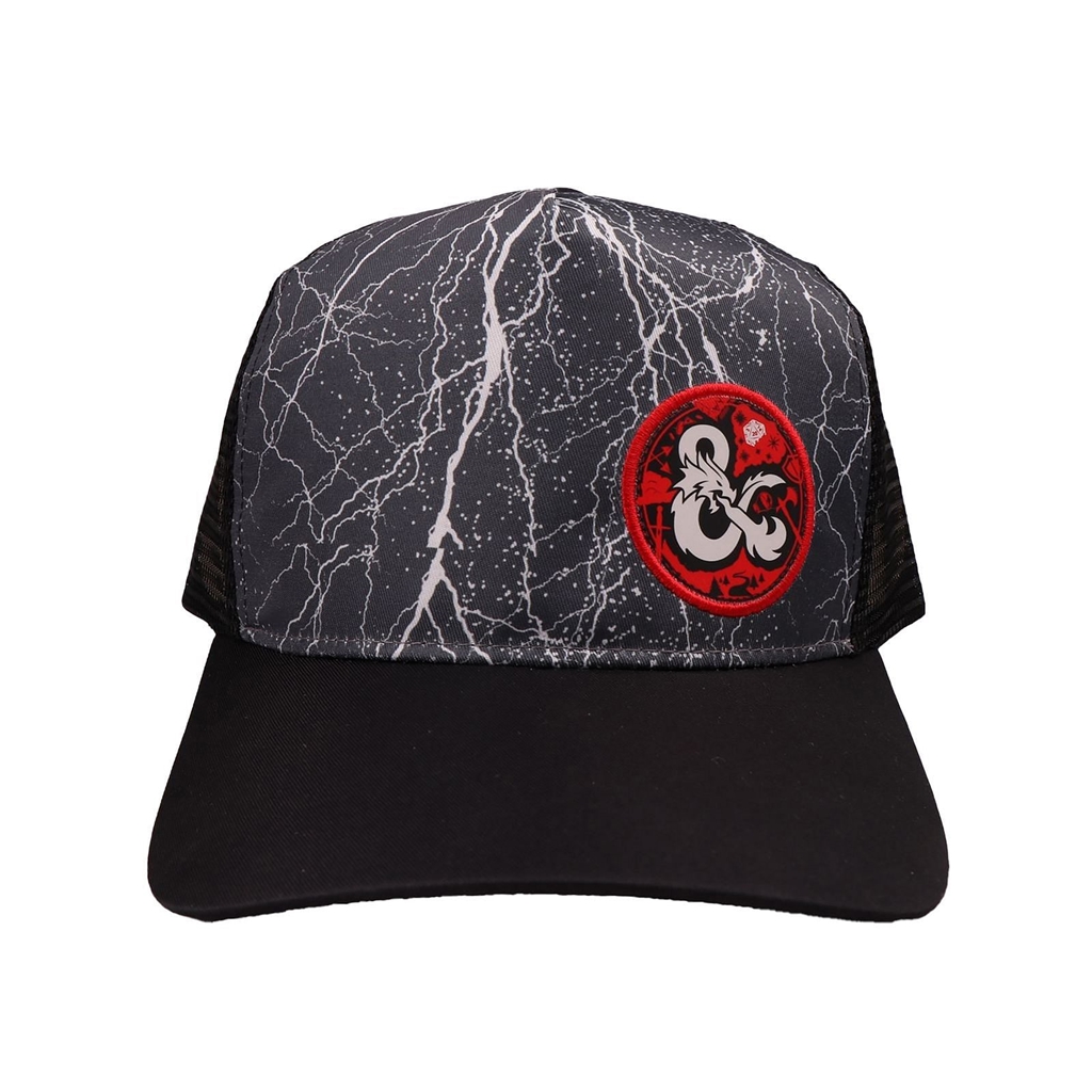 Šilterica sa stražnjim mrežastim dijelom za igrače popularne igre uloga Dungeons and Dragons - šiltericu krasi grafika munje i logo slavnog RPG-a.