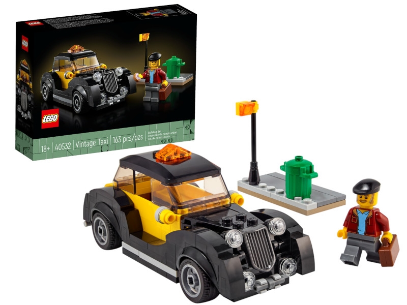 Retro taksi osim žuto-crnog vozila sadrži mali dio ulične scene sa skrivenim izmetom unutar zelene kante za smeće i jednu minifiguru. Set je namijenjen odraslima i sadrži 163 dijela.
