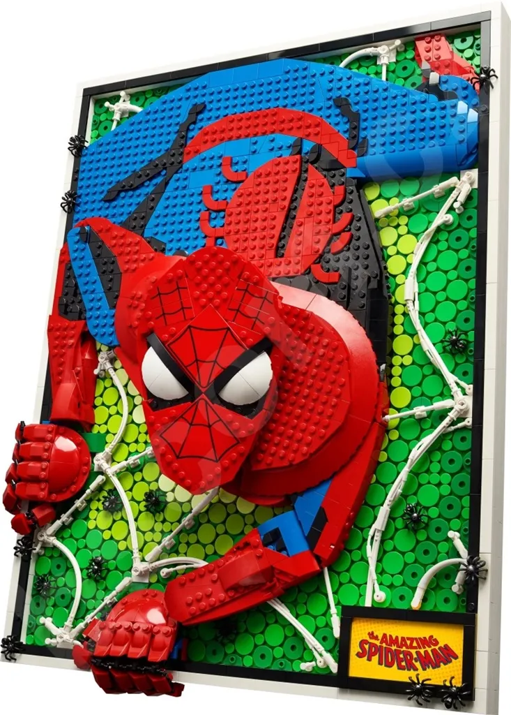 Ovo veliko i jedinstveno umjetničko djelo sastavljeno je od slojeva LEGO kockica; Spider-Man izlazi iz okvira, a njegova glava i prsti mogu se namjestiti u različite poze. Ovo hrabro umjetničko djelo sadrži nekoliko detalja koji će razveseliti obožavatelje Spider-Mana. Pozadina oponaša Ben-Day tehniku tiska iz izvornog stripa; na pozadini je 15 paukova koji predstavljaju 15. broj časopisa Amazing Fantasy u kojem se Spider-Man prvi put pojavio u kolovozu 1962., a u donjem kutu pronaći ćete njegov poznati izrek: „S velikom moći dolazi i velika odgovornost.“