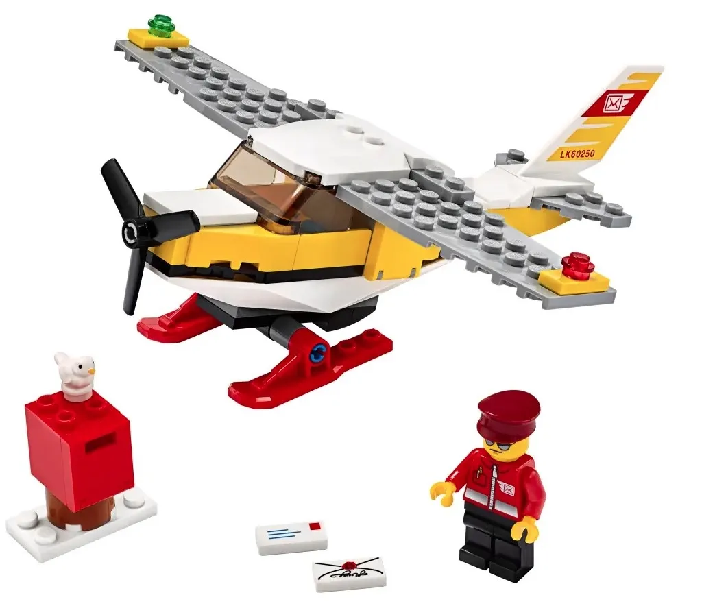 S ovim modelom LEGO® City Poštanskog aviona djeca mogu uzletjeti na krilima svoje mašte. Mogu postati svakodnevni junaci u dostavi pošte u snježne krajeve, gdje su savršene pilotske vještine apsolutna nužnost. Mali avion uključuje rotirajući propeler, skije za snijeg i figuricu pilota/poštara.