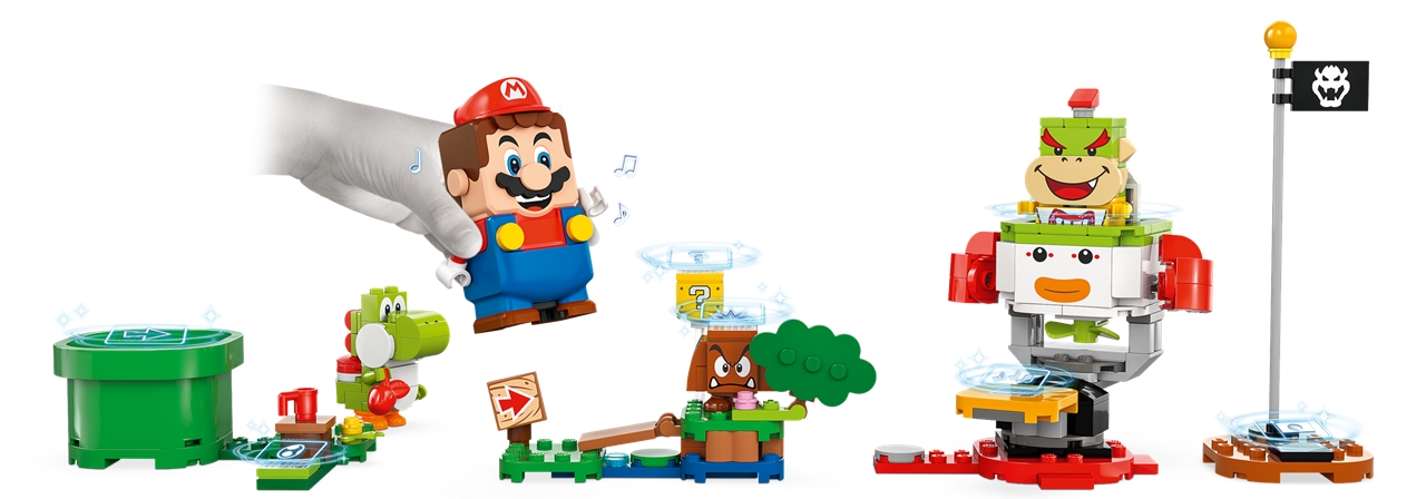 Cestujte od startovacího potrubí k cílové vlaječce, spouštějte digitální reakce od LEGO Maria a cestou sbírejte mince. Pozdravte Yoshiho, porazte Goombu,dupněte na akční kostku s otazníkem, svrhněte Bowsera Jr. a pak odfrčte v jeho Junior Clown Car.
