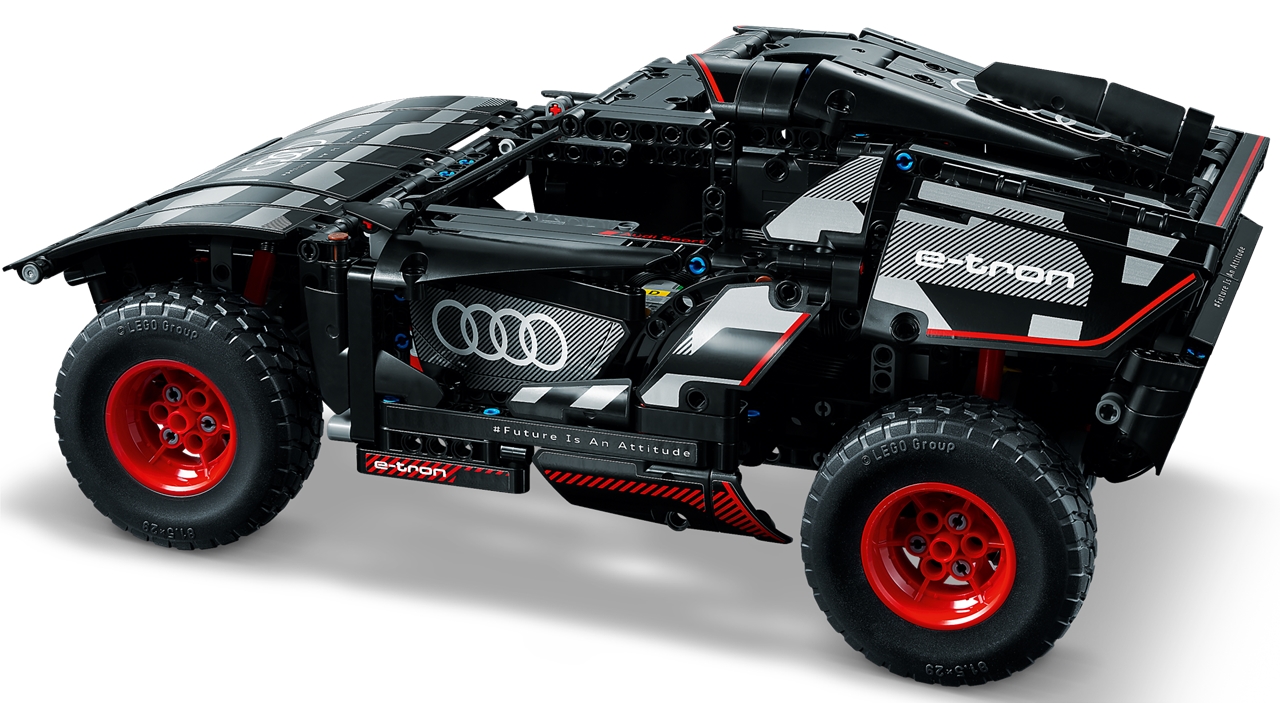 Prilikom sastavljanja saznat će kako funkcionira stvarni električni Audi prilagođen zahtjevnim pustinjskim uvjetima Rallyja Pariz-Dakar. Ovaj model sadrži realistične detalje poput neovisnih amortizera na svakom od 4 kotača. Također predstavlja novi Technic element upravljača izrađen posebno za ovaj model kako bi odgovarao stvarnom dizajnu Audijevih upravljača.