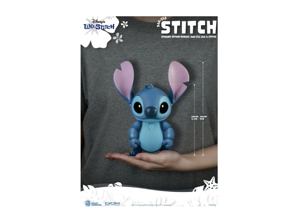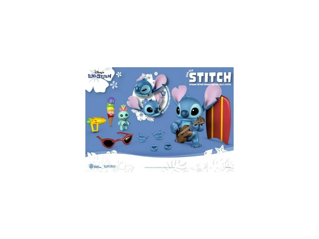 Stitch, vragolasti junak Disneyjevog filma "Lilo & Stitch" (poznat i kao Eksperiment 626), dolazi s dvanaest pokretnih zglobova, zamjenjivim pločama, zamjenjivim rukama i nizom dodataka povezanih sa Stitchom. Te značajke omogućuju obožavateljima da se igraju Stitchom i ukrašavaju ga po želji, bilo da nosi njegove lijepe sunčane naočale, jede sladoled ili svira ukulele i pjeva. Zbog njegovog preslatkog smiješnog ponašanja teško ga je odložiti. Obožavatelji Stitcha to sigurno neće propustiti! Razgibajte se uz Stitcha i uživajte u havajskim vibracijama. Figura je visoka 18 cm.