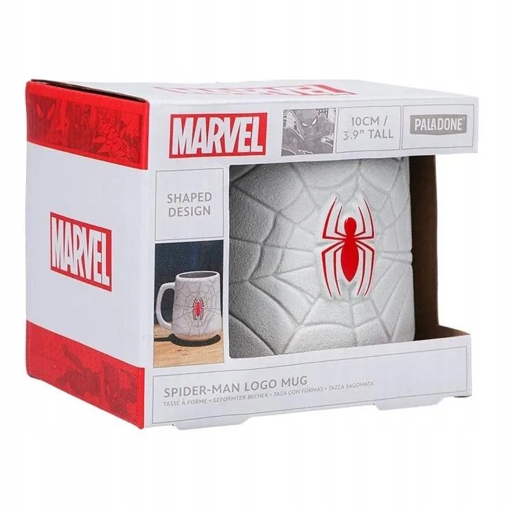 Keramička šalica zapremine 450 ml ima utisnut ikonični logo paučine. Idealna je za obožavatelje simpatičnog pauka.