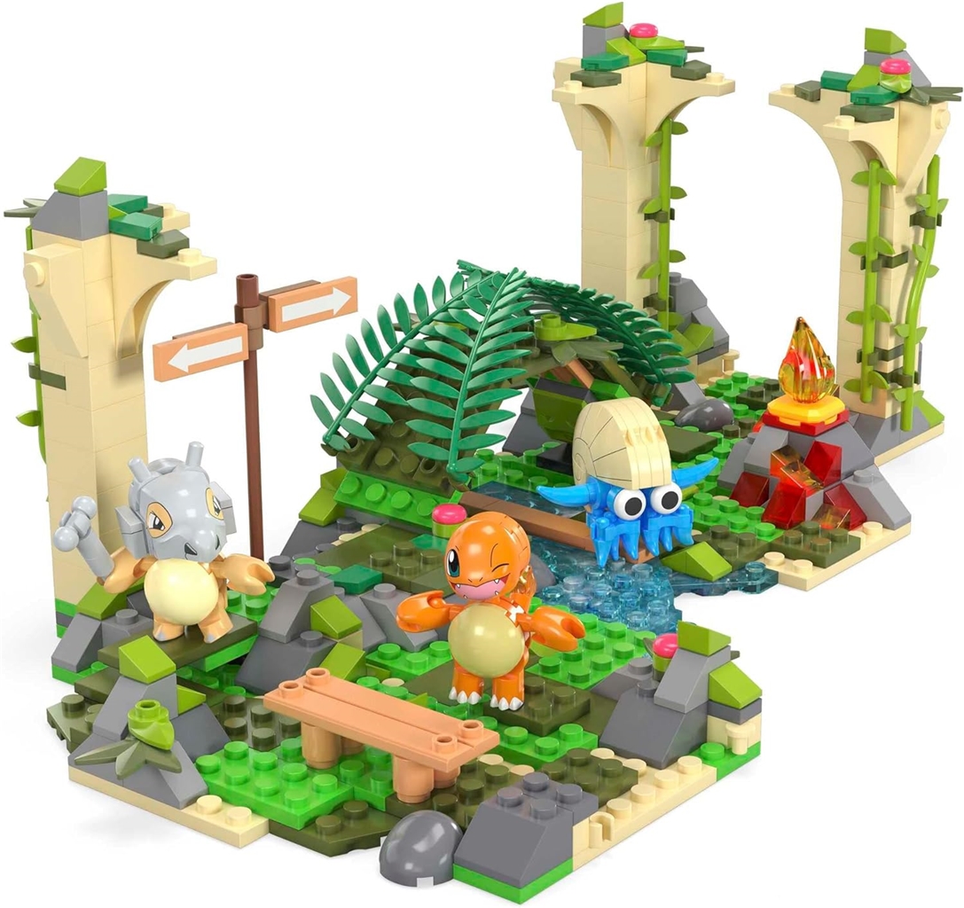 Sastavite drevne zaboravljene ruševine za figurice Cubonea, Charmandera i Omanytea. Istražujte ruševine zahvaljujući posebnim funkcijama: neka Charmander zapali „vatru“ a Omanyte i Cubone mogu se igrati skrivača usred džungle. Set se može kombinirati s drugim kockicama iz serije Constructor Adventure i tako stvoriti prošireni svijet Pokémon pun realističnih detalja. Građevinske igračke MEGA Pokémon stvorene su za male graditelje od 7 godina.
