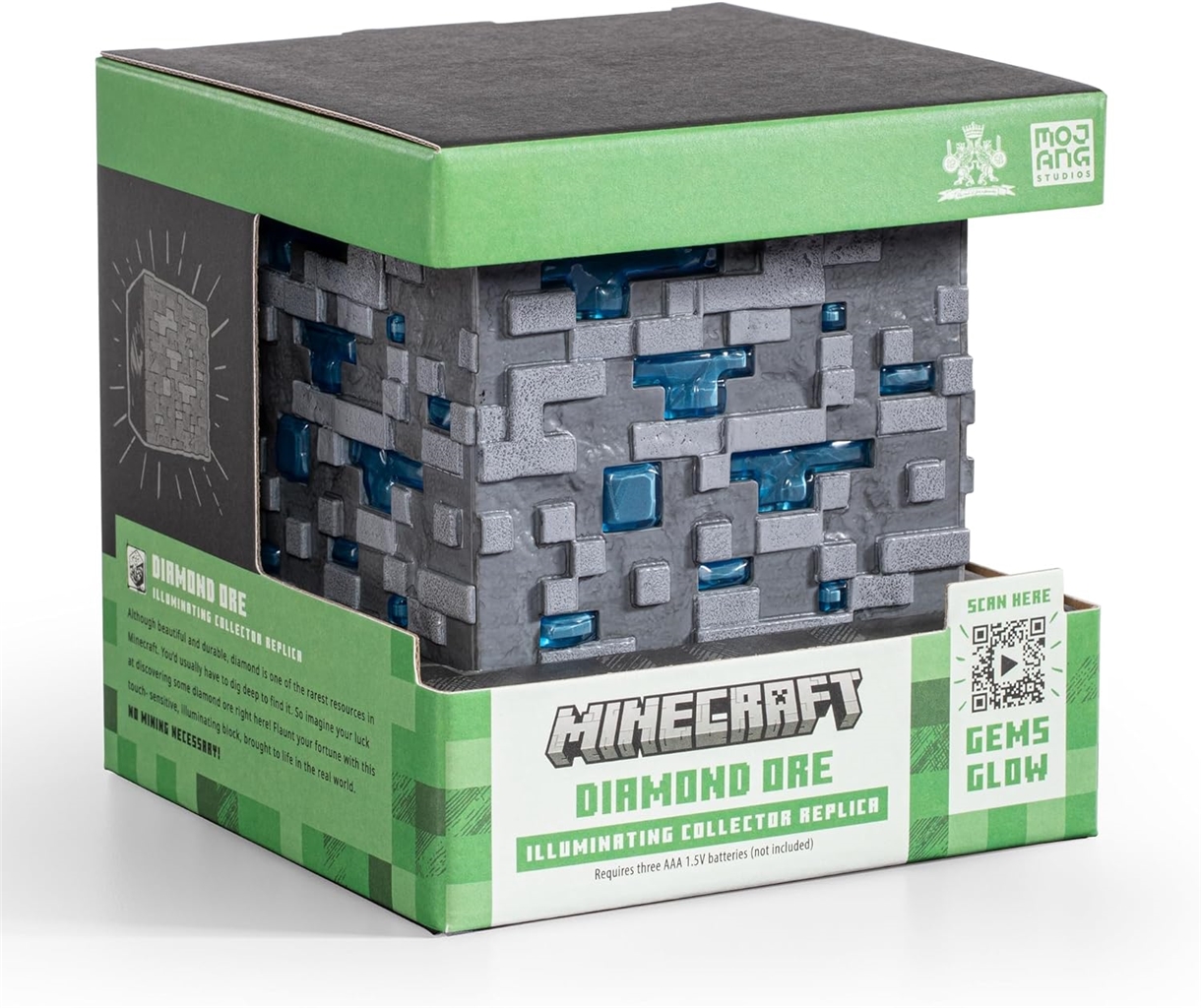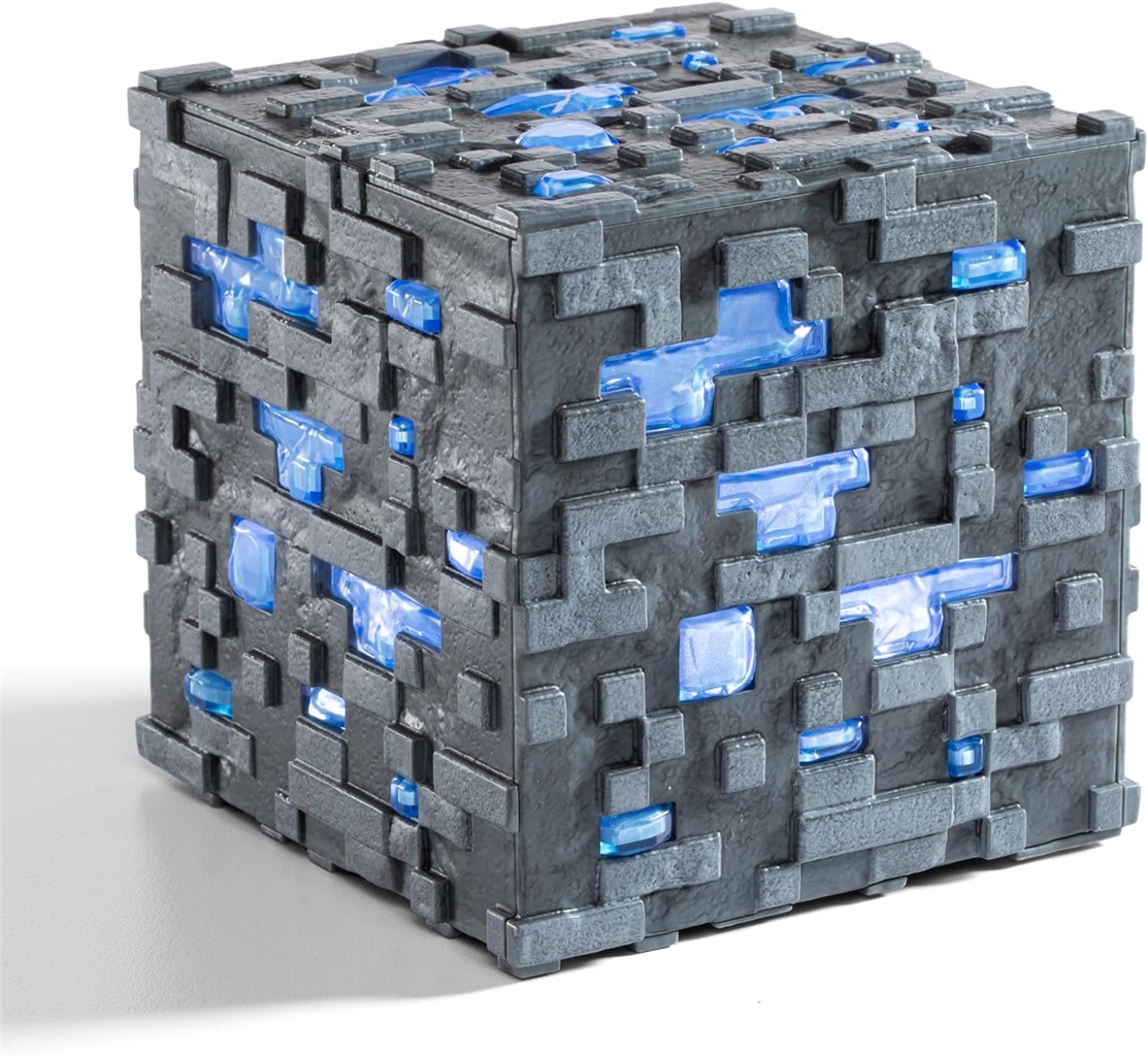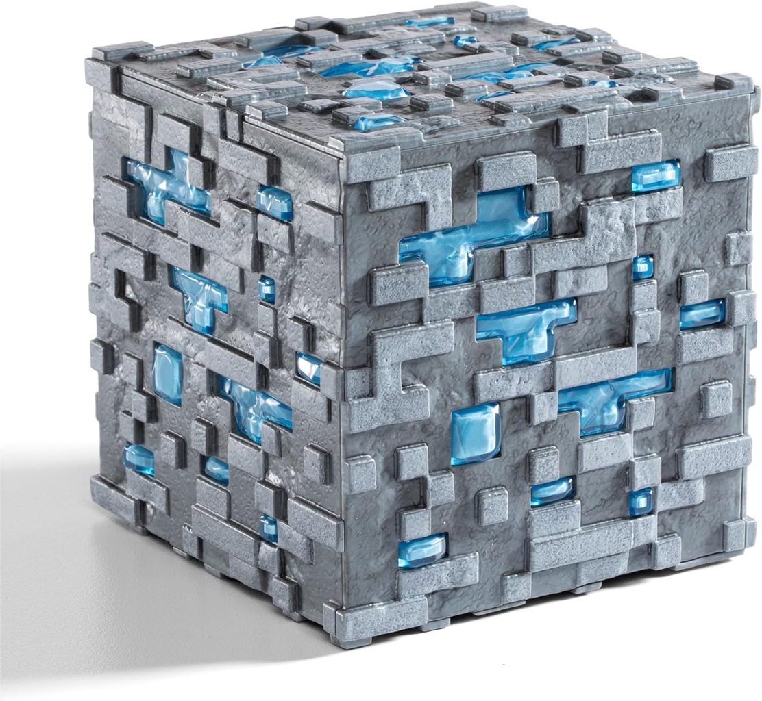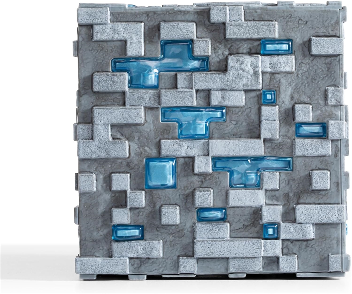 Kolekcionarska replika dijamantne kocke koju poznajete iz Minecrafta. Detaljno izrađena. Kocka svijetli, za postizanje svjetlećeg efekta potrebne su AAA baterije, koje nisu uključene u pakiranje. Dimenzije: 13,70 cm x 13,70 cm x 13,70 cm. Službeno licencirano.