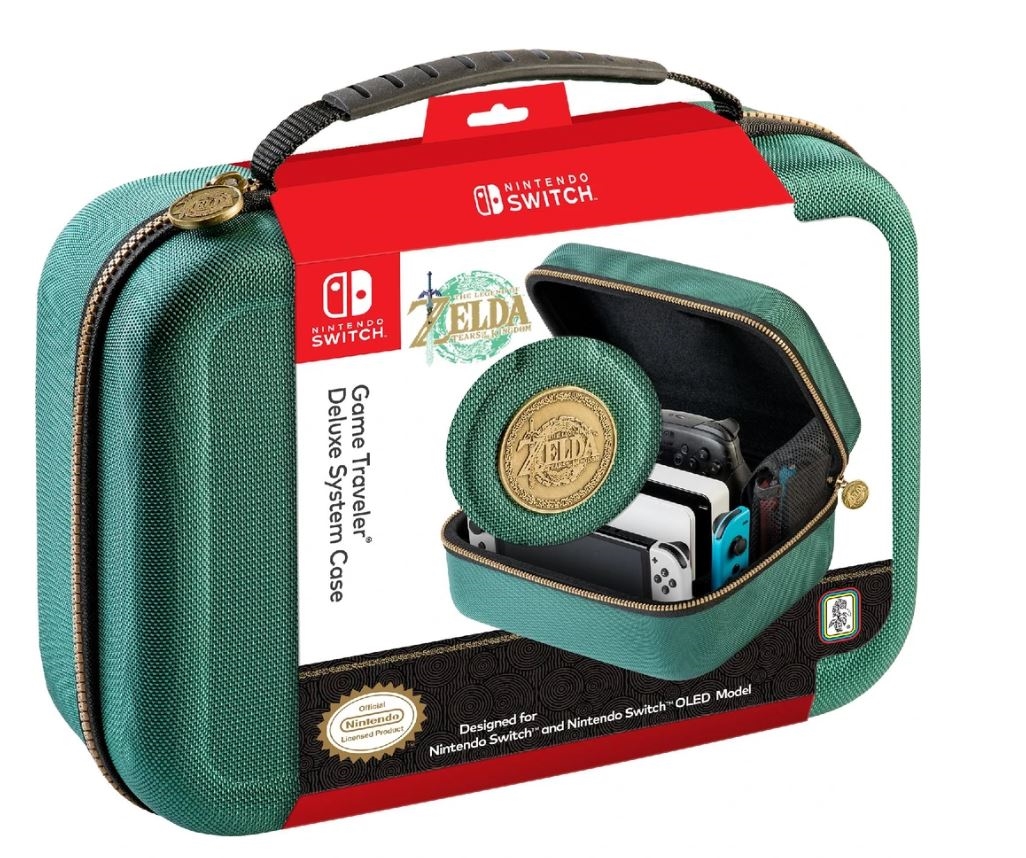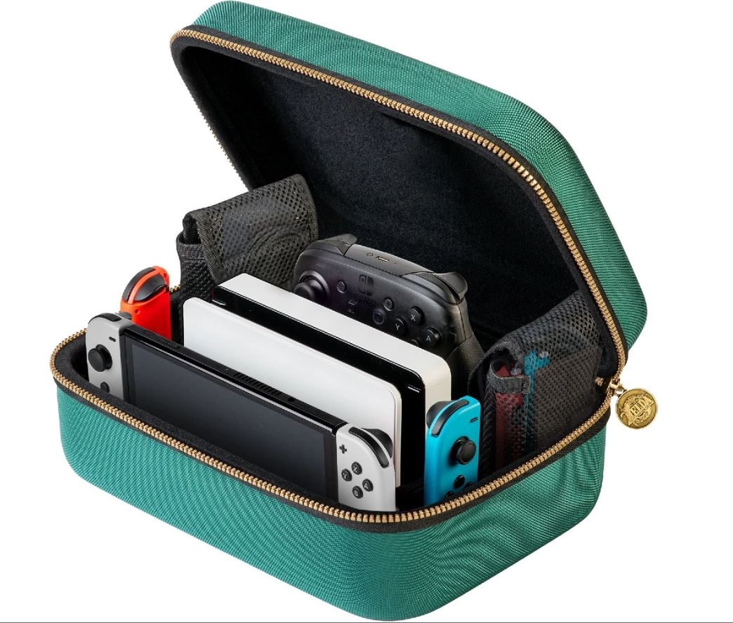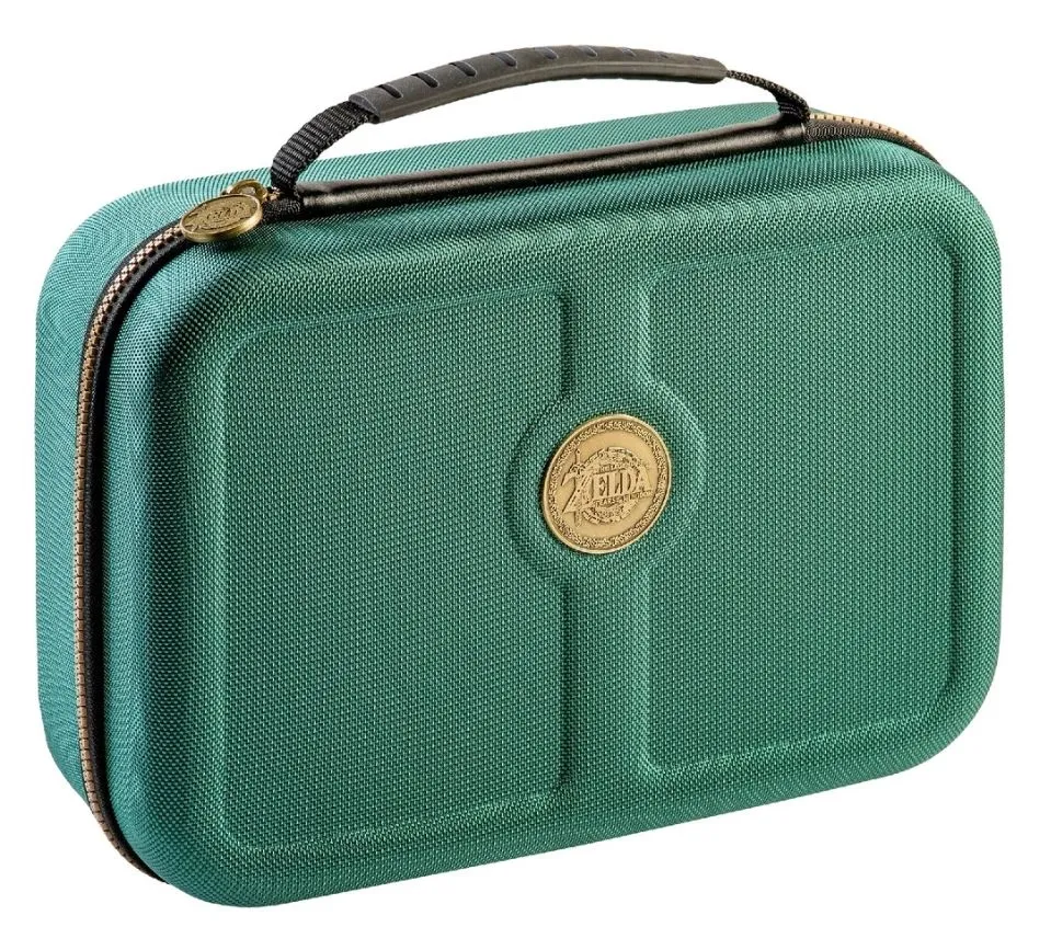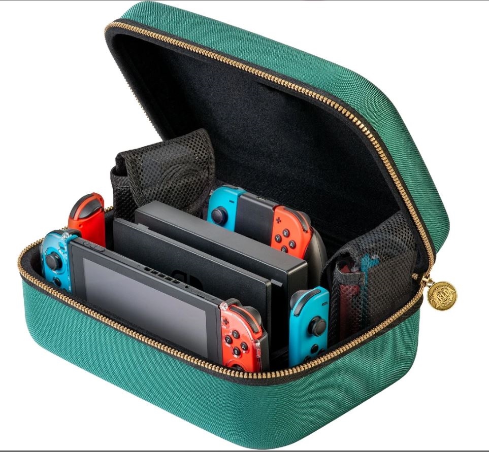 Sigurno prenosite svoju igraću konzolu Nintendo Switch uz ovu luksuznu torbu s motivom igre The Legend of Zelda: Tears of the Kingdom! Torba prima konzolu, docking stanicu (dock), Joy-Con kontrolere, Joy-Con Grip ili Pro Controller, potrebne kabele i drugu sitnu opremu. U paketu su dvije futrole za igre i dvije futrole za microSD kartice. Pogodno za modele Nintendo Switch/Switch Lite/Switch OLED.