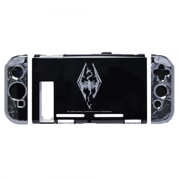 Ovaj 3-dijelni zaštitni pokrov za Nintendo Switch oponaša izgled istrošenog metalnog oklopa iz svijeta Elder Scrolls i sadrži artworke iz igre Skyrim. Joy-Con kontroleri se mogu skinuti s konzole bez da morate skidati pokrov.