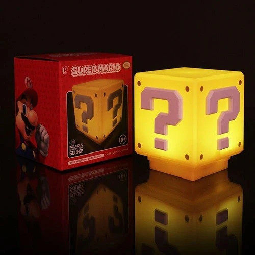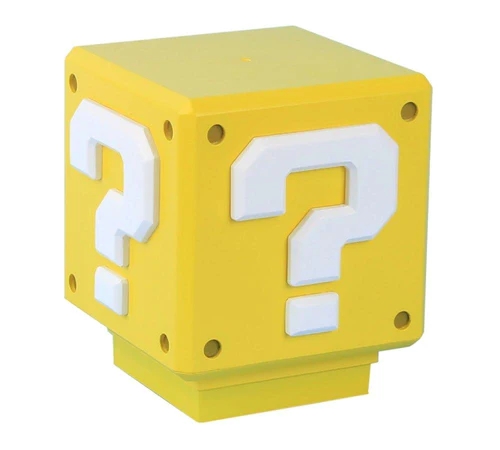 Prenosna lampa u obliku bloka s upitnikom iz klasične igre Super Mario idealan je dodatak za svako gamersko skrovište. Lampu je moguće upaliti ili ugasiti jednostavnim dodirom ruke na gornju površinu, a pritom pri paljenju svira ikoničnu Mario melodiju.