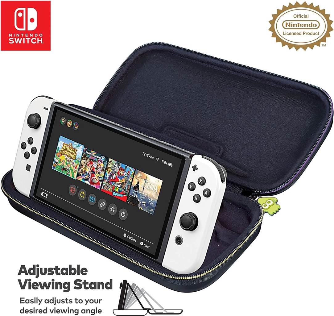 Luksuzna putna futrola za konzolu Nintendo Switch s motivom igre Splatoon 3 omogućuje ti da svoju konzolu Nintendo Switch sigurno nosiš sa sobom. Nintendo Switch Lite i model OLED – svuda sa sobom!