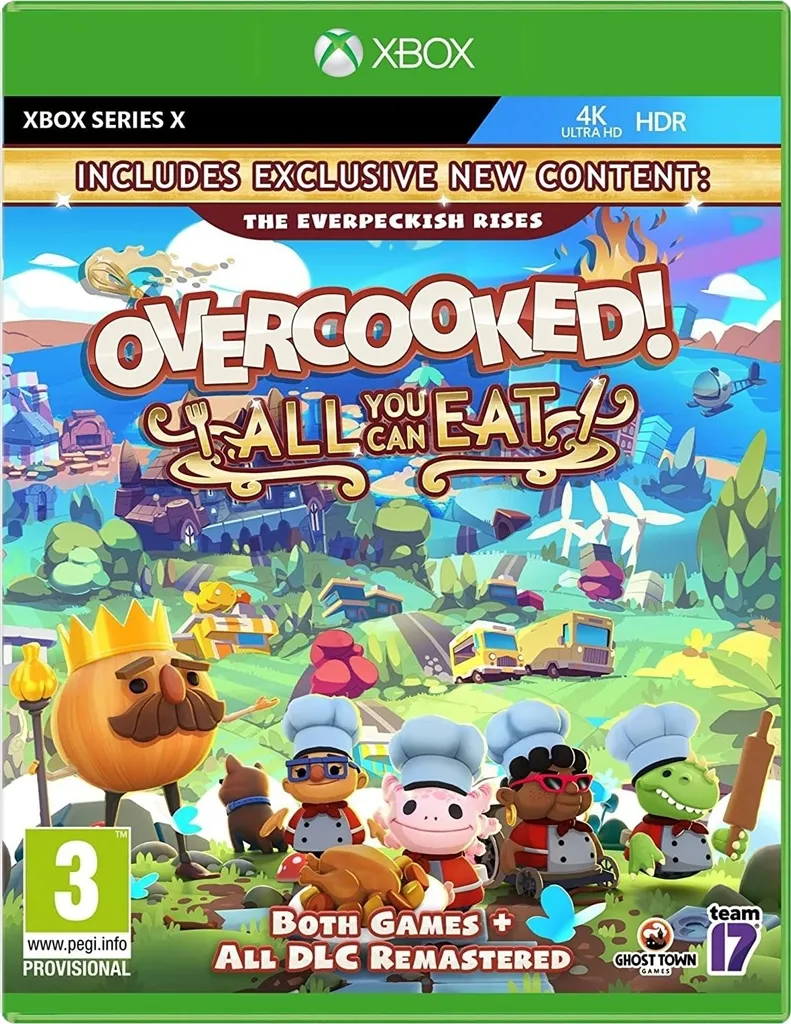 Overcooked: All You Can Eat je kompilacija igara Overcooked 1 i 2 za PlayStation 5 i Xbox Series X s rezolucijom 4K i 60 fps. Sve razine izvornog Overcookeda prerađene su u enginu Overcooked 2. Paket dodatno uključuje online multiplayer i crossplay