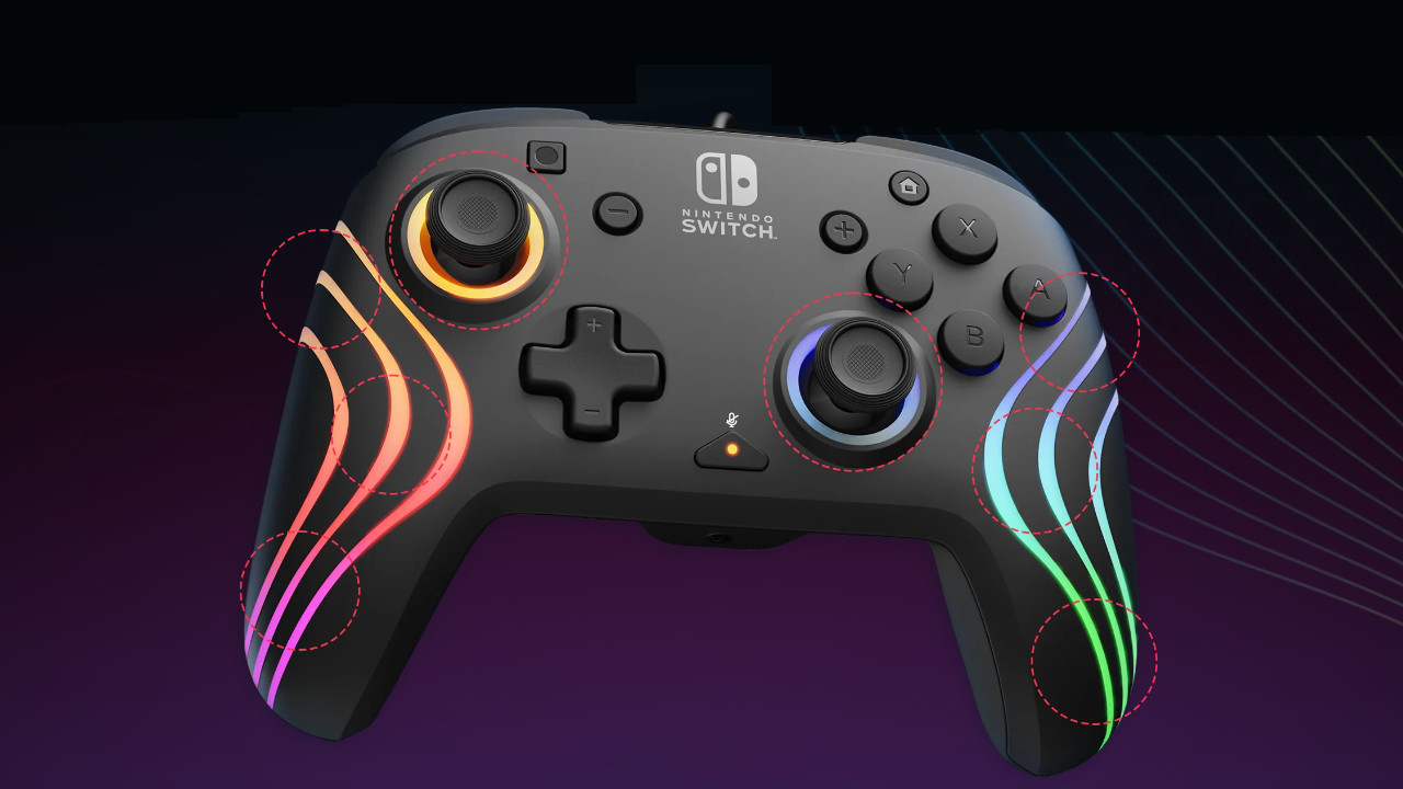 Žični kontroler za igre Afterglow Wave PDP s blistavim bojama, osam RGB zona osvjetljenja i četiri unaprijed postavljena režima unijet će još više boja u vaš gaming život. Otkrijte gaming svjetove na potpuno nov način.