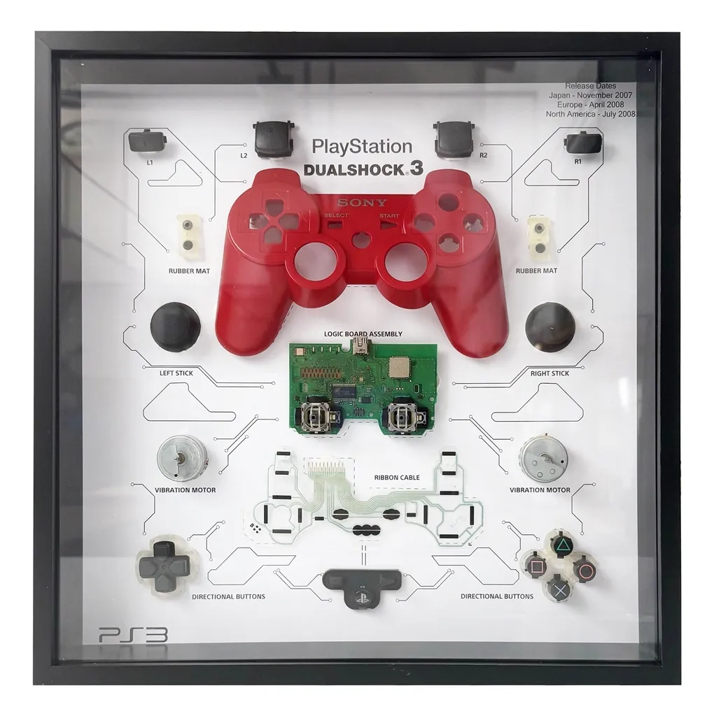 Originalna dekoracija za sobu svakog igrača koji voli gaming! Pogledaj svaki komponent koji se nalazi unutar kontrolera Dualshock 3 za PlayStation 3 na ovom shadowboxu, koji će zasigurno privući pažnju.