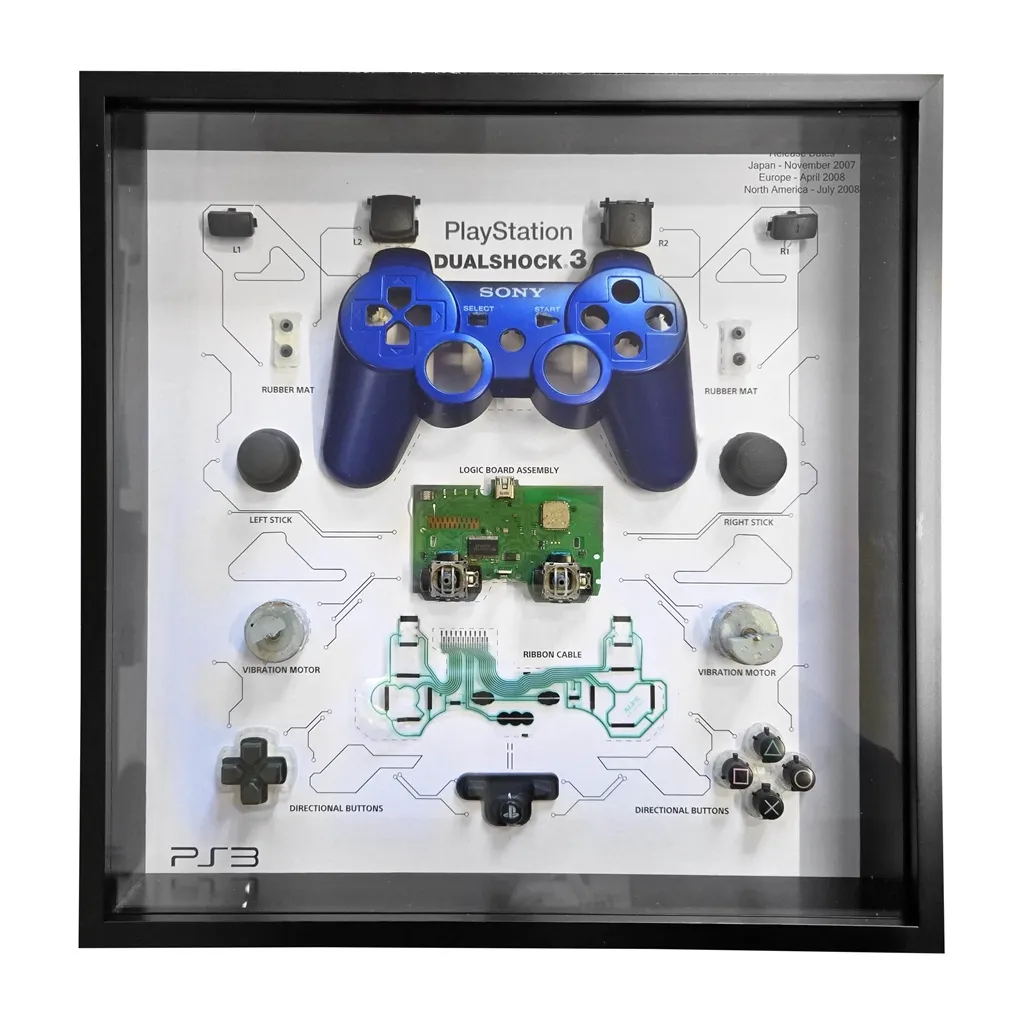 Originalna dekoracija za sobu svakog igrača koji voli gaming! Pogledaj svaki komponent koji se nalazi unutar kontrolera Dualshock 3 za PlayStation 3 na ovom shadowboxu, koji će zasigurno privući pažnju.