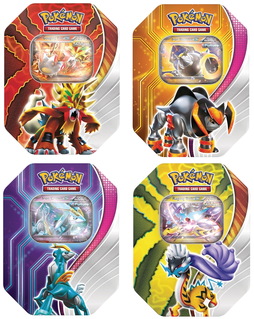 Ovo pakiranje sadrži 4 boostera od 10 nasumičnih karata, jednu promo kartu (Gouging Fire ex, Raging Bolt ex, Iron Boulder ex ili Iron Crown ex), sve smješteno u limenoj kutiji.