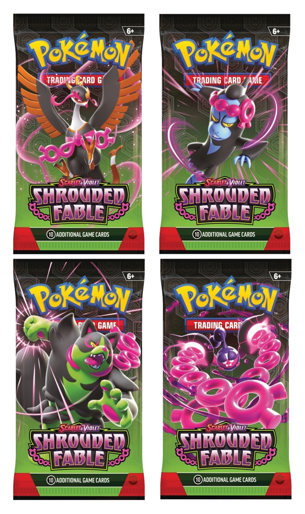 U zemlji Kitakami šire se glasine i sjećanja varaju, dok vrijeme neumorno teče! Pripremite se za sumrak i otkrijte zlonamjernu prisutnost, kada Pecharunt ex naređuje Vjernoj trojici - Okidogi ex, Munkidori ex i Fezandipiti ex - da izvršavaju njegove zle zapovijedi. Ovi i drugi nevjerojatni Pokémoni čekaju na vas u proširenju Pokémon TCG: Scarlet & Violet-Shrouded Fable!
