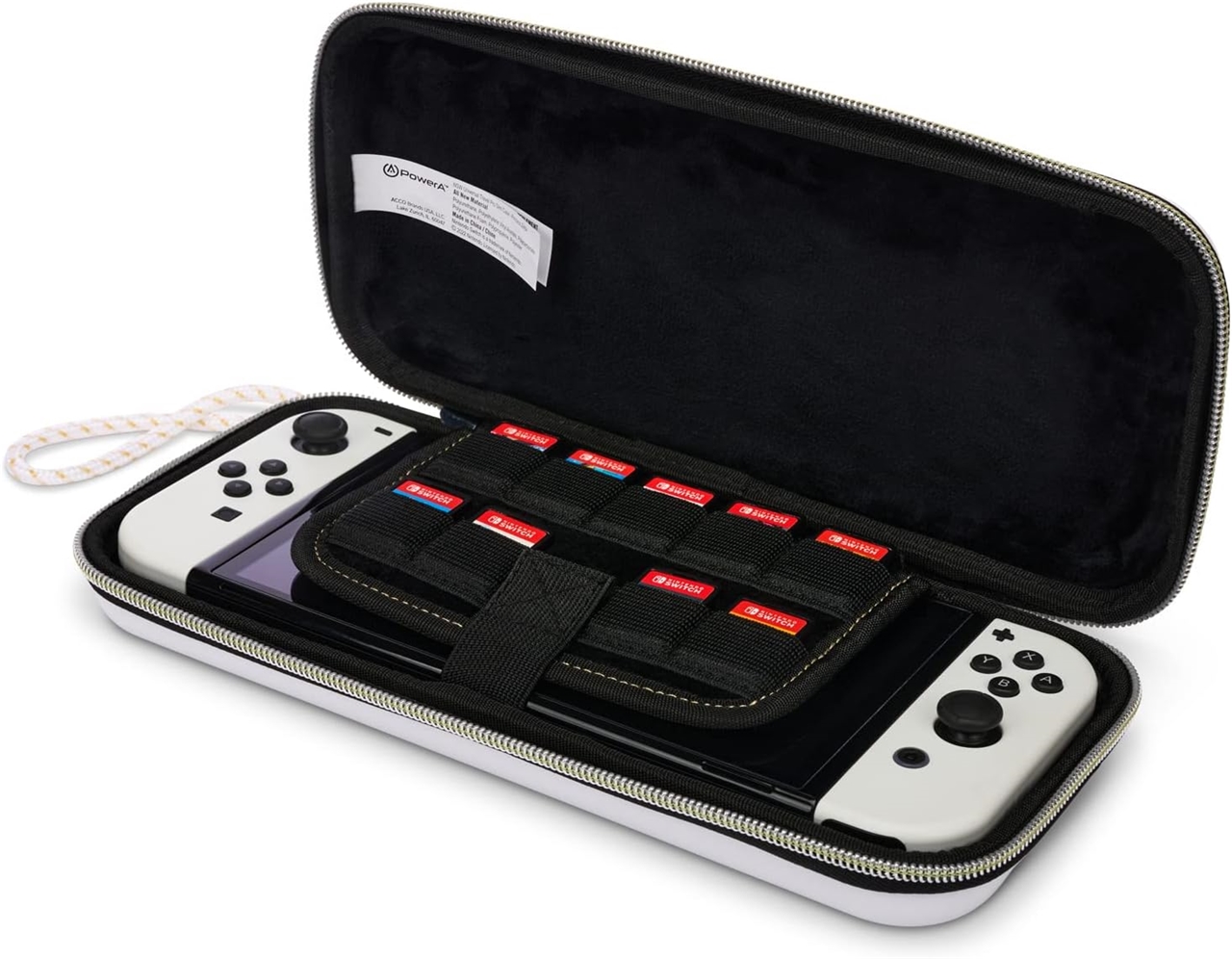 Prijenosna futrola u luksuznom izdanju s motivom princeze Zelde iz igre The Legend of Zelda održat će vašu igraću konzolu Nintendo Switch, Nintendo Switch OLED model i Nintendo Switch Lite sigurnom bez obzira kamo krenuli.