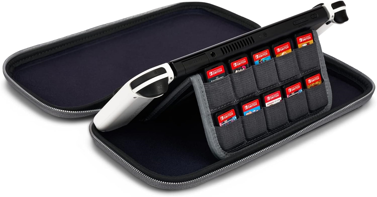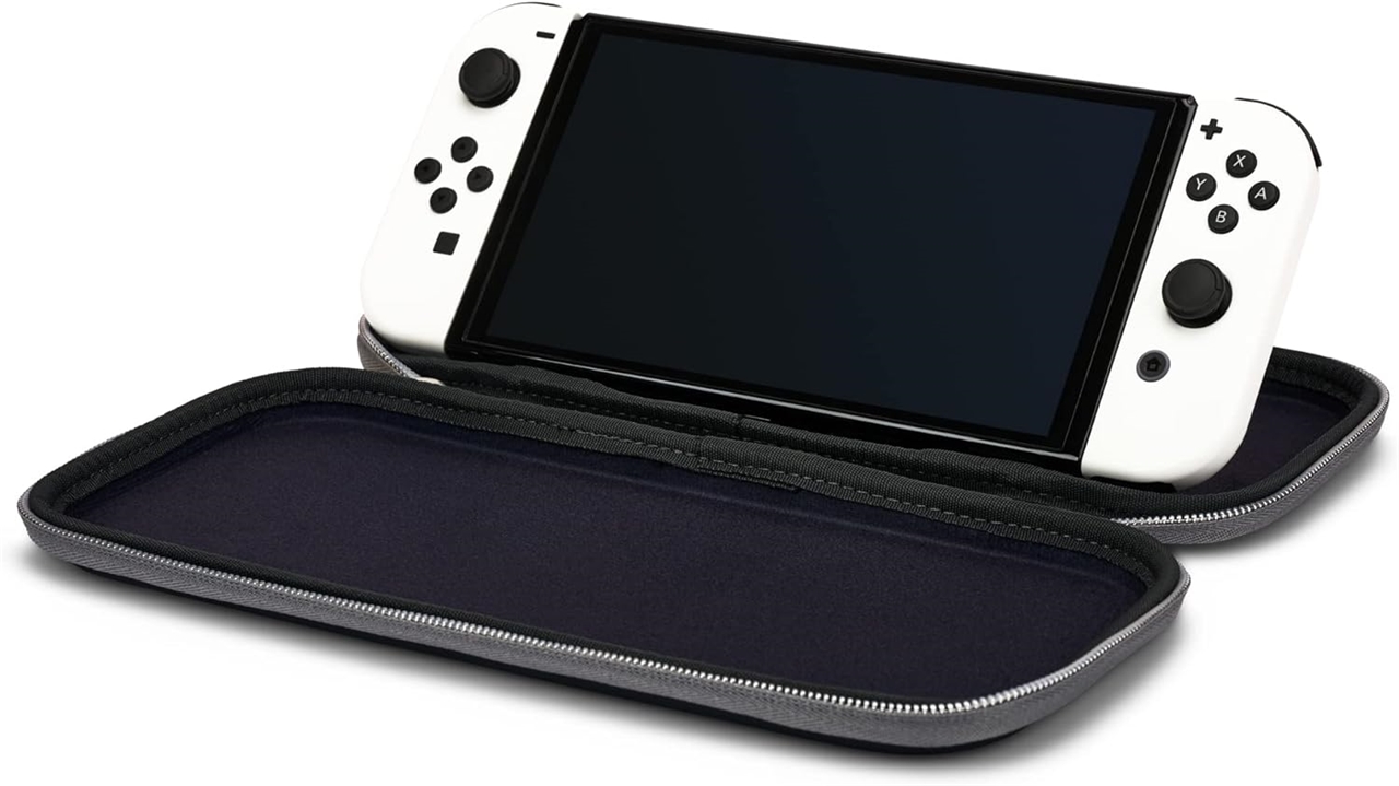 Futrola za Nintendo Switch Lite i OLED. Futrola također ima prostor za igraće kartice i može se koristiti kao stalak za igranje.