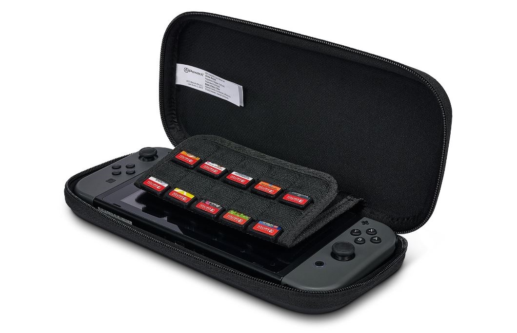 Prijenosna futrola PowerA Slim Case za Nintendo Switch, OLED i Switch Lite zaštitit će vašu igraću konzolu na putovanjima i omogućiti njezino sigurno prenošenje. Praktičan unutarnji raspored omogućuje pohranu 10 igraćih kartica. Velika prednost je integrirani unutarnji stalak za naslanjanje konzole.