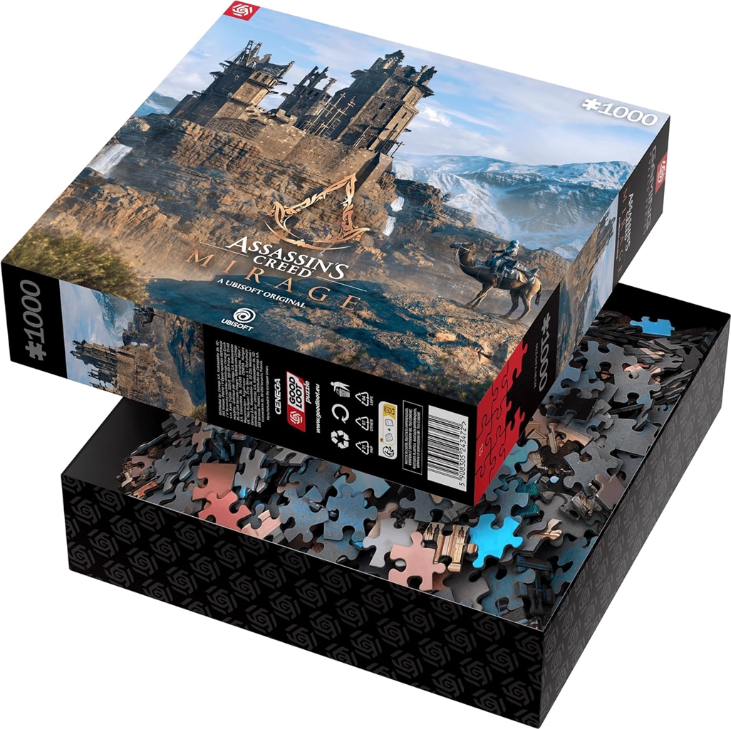 Sastavite si asasinski dvorac Alamut! Prekrasna slagalica za fanove i igrače računalne igre Assassin's Creed Mirage sastoji se od 1000 dijelova koji imaju efekt platna i smanjuju sjaj svjetla. Dijelovi su izrađeni visoke kvalitete i otporni na savijanje.