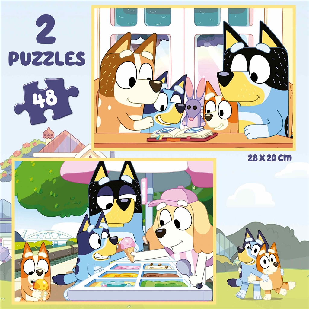 Sada puzzle Bluey sadrži 2 slagalice u praktičnoj torbi za pohranu. Svaka slagalica ima 48 dijelova i prikazuje scene s Bluey i njenom obitelji u toplim trenucima. Idealno za malu djecu koja vole Bluey i uživaju u zabavnoj i kreativnoj igri. Torba olakšava nošenje slagalica na putovanjima - ponesite ih svuda sa sobom!