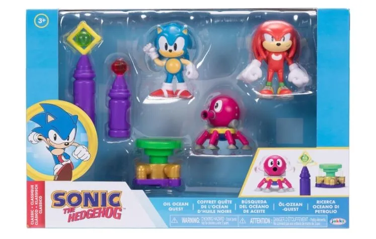 Jež Sonic Hedgehog Oil Ocean figurica 6 cm. Stvorite svoju kolekciju sa Sonic Oil Ocean Quest iz videoigre Sonic the Hedgehog™. Set uključuje figurice od 6 cm i dijelove dodataka iz okoline koji pričaju priču o avanturi u zoni naftnog oceana! Set uključuje 6 cm figurice klasičnog Sonica, klasičnog Knucklesa i klasičnog Octusa uz dvije kule Obelisk i figurice okoline Burner Cap Platform. Klasični Sonic i klasični Knuckles imaju 5 točaka artikulacije na glavi, nogama i ramenima. Klasični Octus ima 1 točku artikulacije. Set također uključuje dodatke Burner Cap Platform i Obelisk Towers za upotpunjavanje priče i proširenje avanture. Ovaj dioramski set idealan je za fanove i kolekcionare te oživljava kultni Sonicov svijet od JAKKS Pacific!