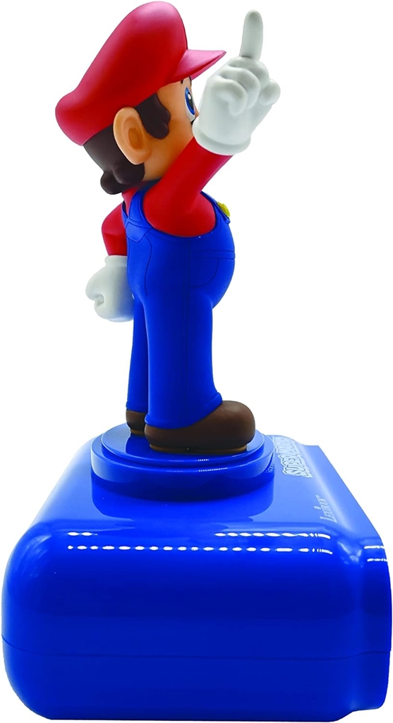3D budilica u sjajnom izdanju Super Maria. S LCD zaslonom pogodnim za spavanje i tipkama za reprodukciju zvukova Super Maria. Budilica s funkcijom ponovnog buđenja.