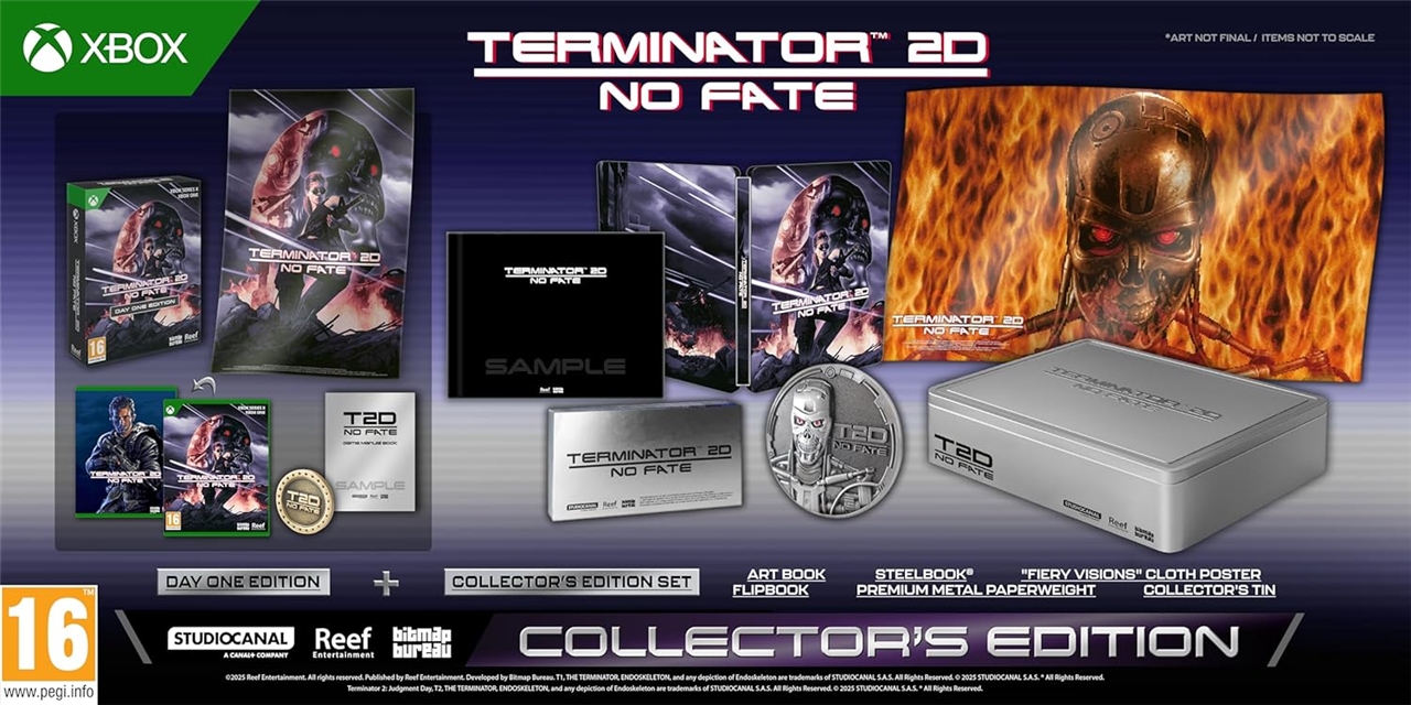 Nabavite ovu ekskluzivnu kolekcionarsku ediciju igre Terminator 2D: NO FATE i doživite najkompletnije iskustvo iz svijeta Terminatora s mnoštvom jedinstvenih kolekcionarskih predmeta!