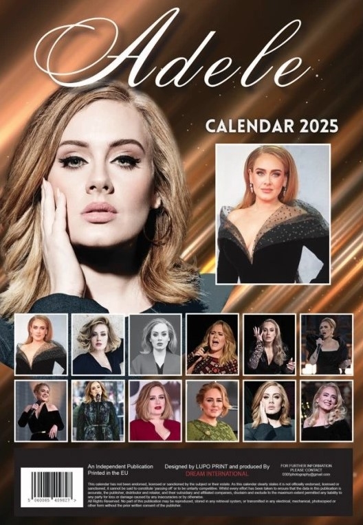 Službeni zidni dvanaestomjesečni kalendar pjevačice Adele za 2025. godinu.