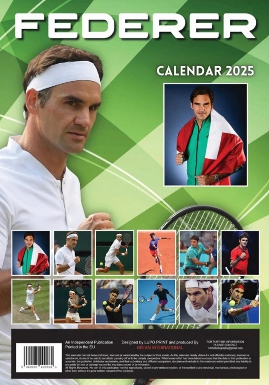 Službeni zidni dvanaestomjesečni kalendar tenisača Rogera Federera za godinu 2025.