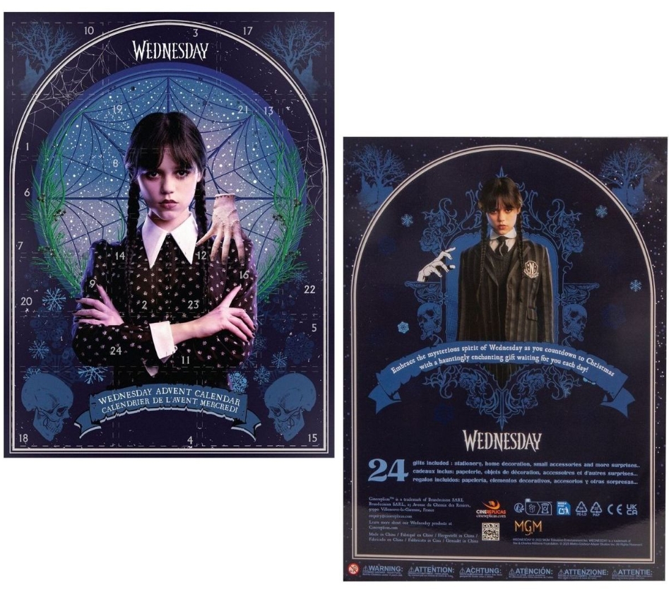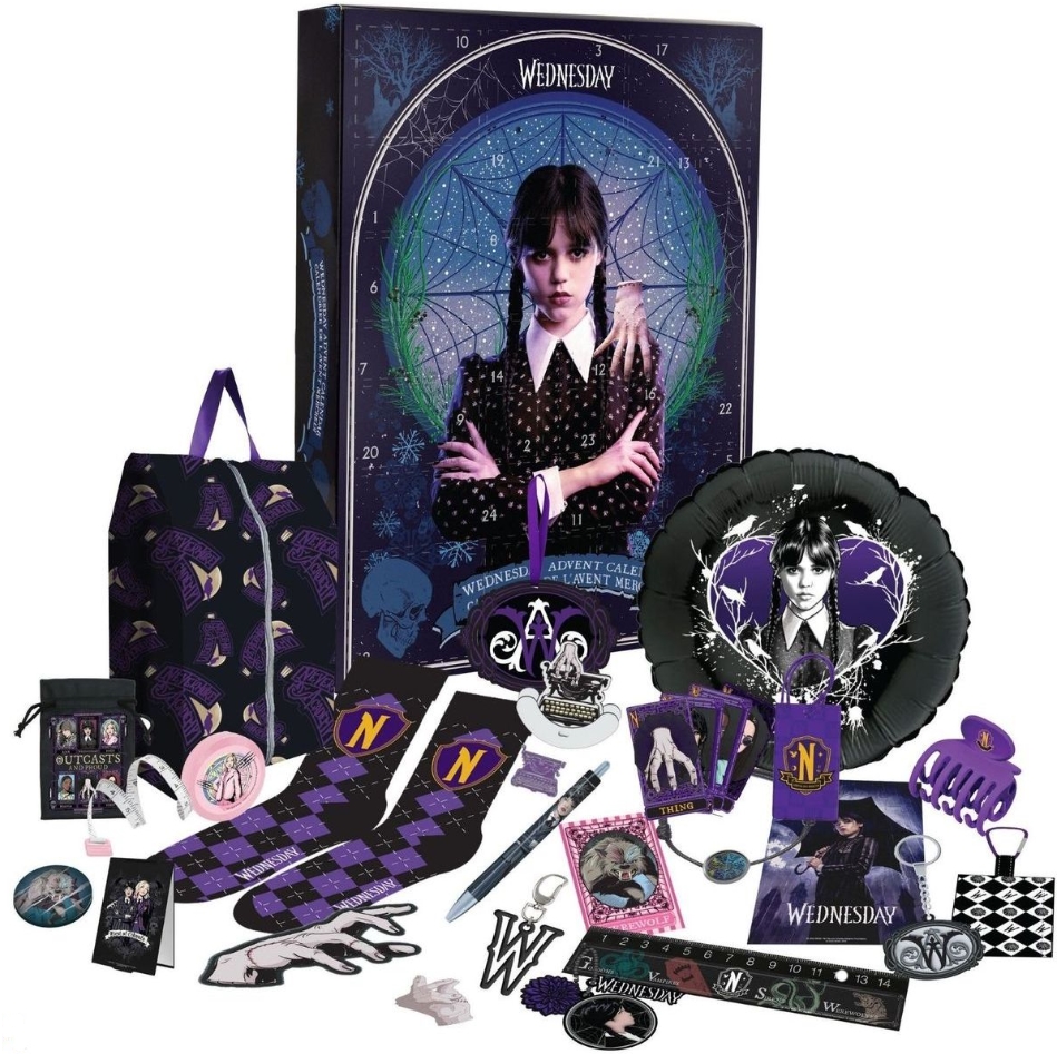Otkrijte čar mračnog humora i stila s adventskim kalendarom Wednesday 2025, inspiriranim popularnom serijom iz svijeta Addamsove obitelji. Ovaj kalendar donosi 24 originalna licencirana poklona koji će razveseliti sve obožavatelje Wednesday Addams – i to bez ijedne slastice! Svaki dan vas čeka novo iznenađenje s mračno elegantnim prizvukom.