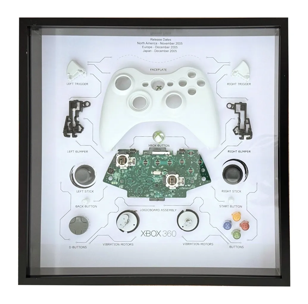 Originalna dekoracija za sobu svakog igrača koji voli gaming! Pogledaj svaki komponent koji se nalazi unutar kontrolera za Xbox 360 na ovom shadowboxu, koji će sigurno privući pažnju.